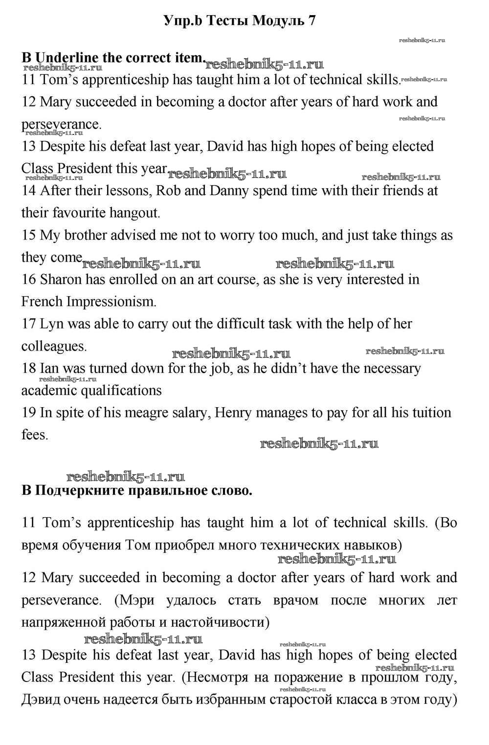 Готовая домашняя работа с ответами по Английскому языку за 11 класс Эванс, Дули, Оби, Афанасьева, Михеева Учебник Spotlight Просвещение 2015 ФГОС - Тесты B