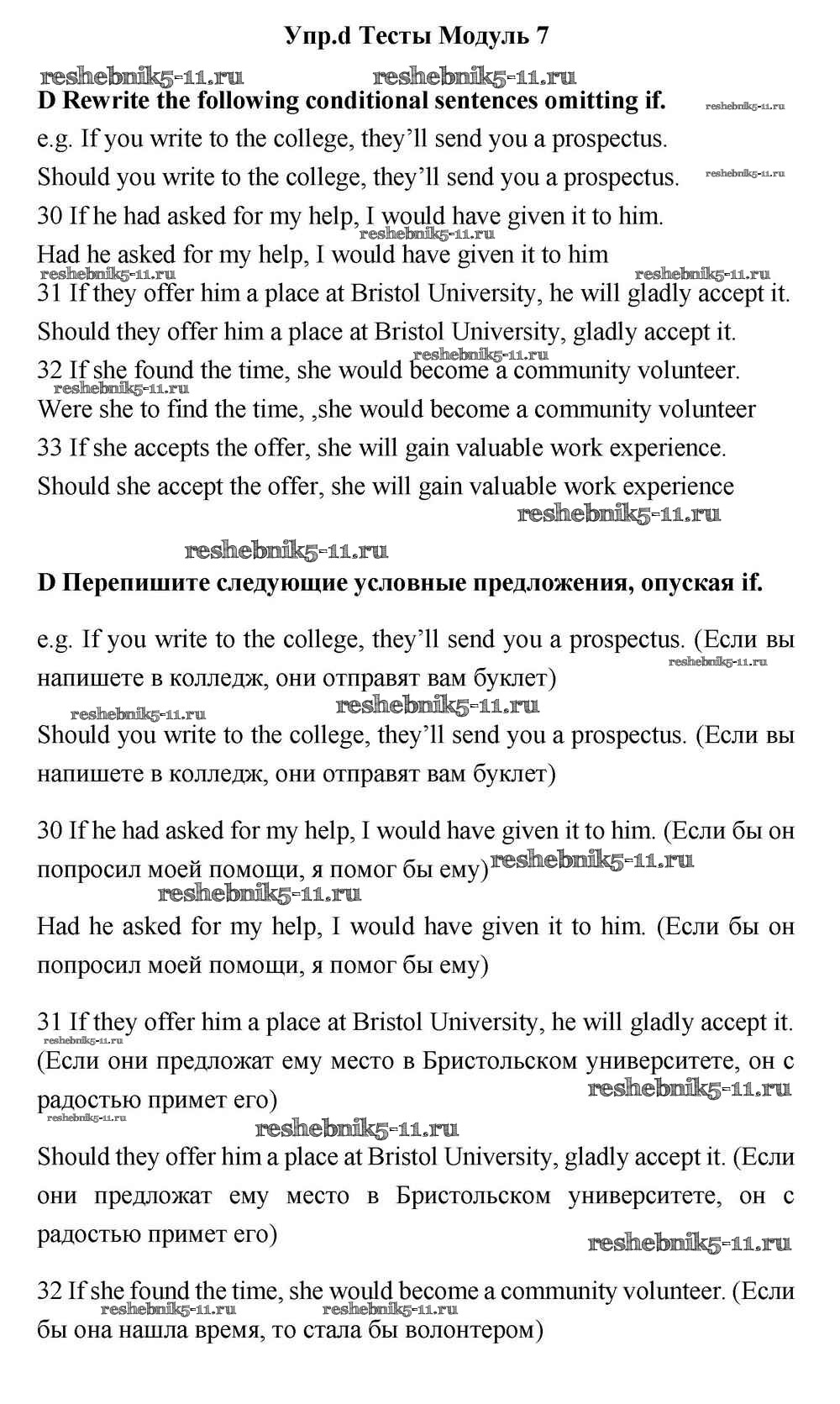 Готовая домашняя работа с ответами по Английскому языку за 11 класс Эванс, Дули, Оби, Афанасьева, Михеева Учебник Spotlight Просвещение 2015 ФГОС - Тесты D