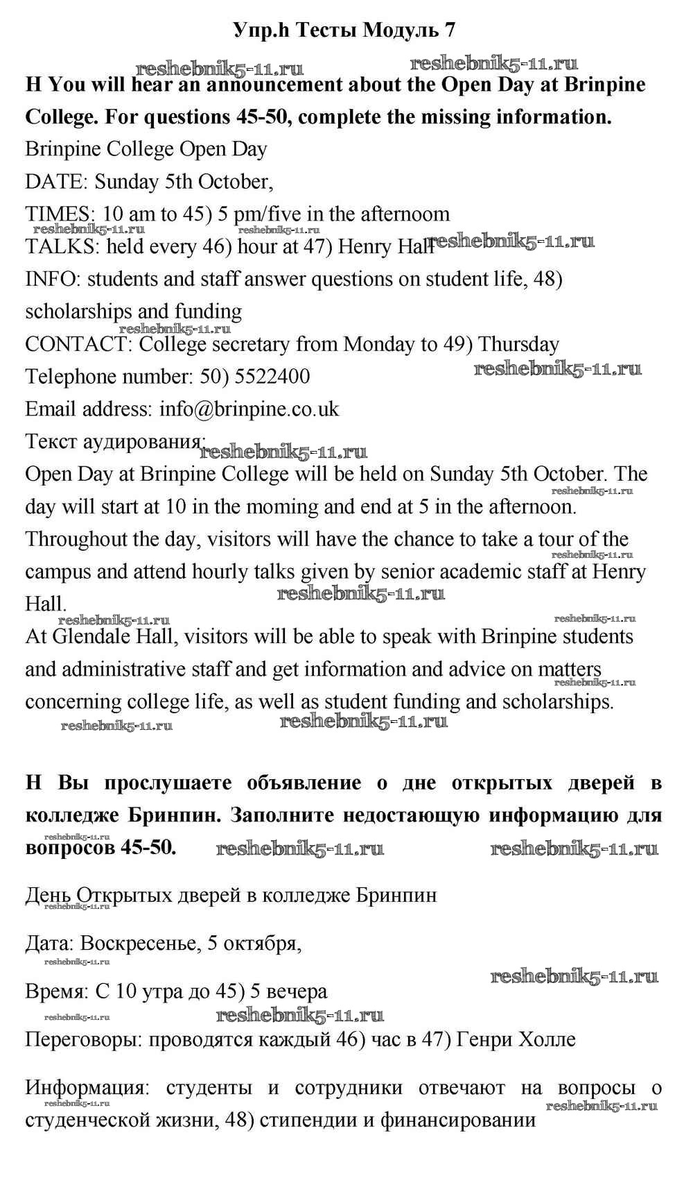 Готовая домашняя работа с ответами по Английскому языку за 11 класс Эванс, Дули, Оби, Афанасьева, Михеева Учебник Spotlight Просвещение 2015 ФГОС - Тесты H