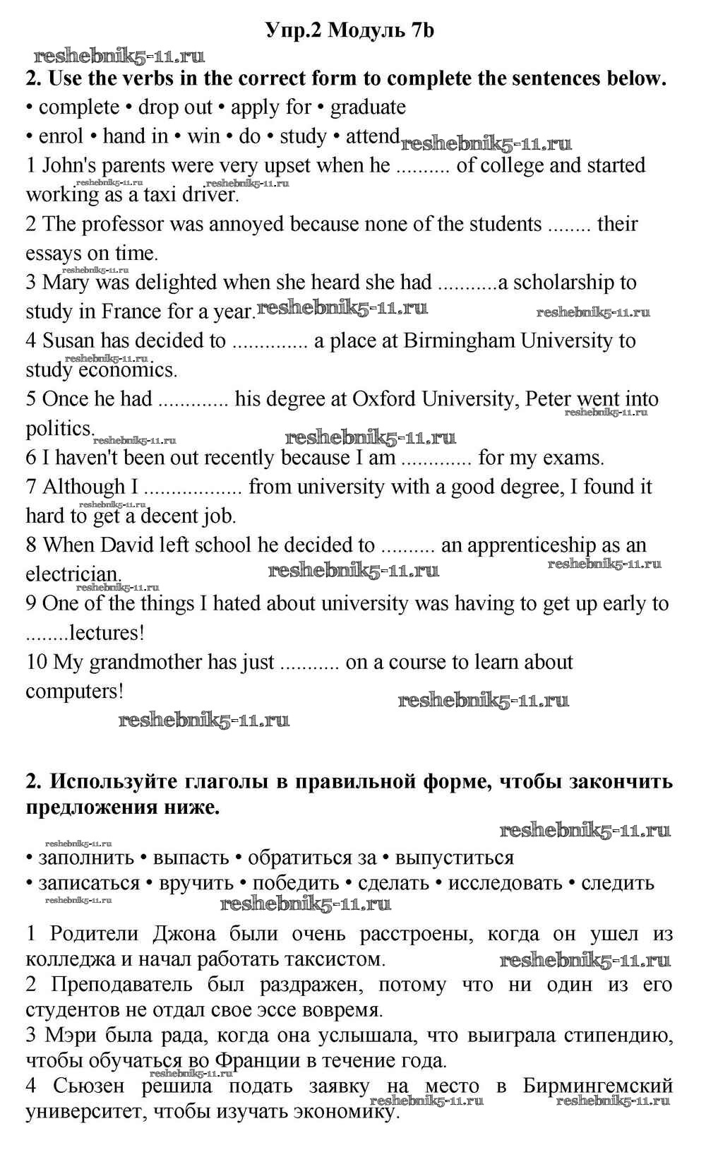 Готовая домашняя работа с ответами по Английскому языку за 11 класс Эванс, Дули, Оби, Афанасьева, Михеева Учебник Spotlight Просвещение 2015 ФГОС - Часть 7b 2