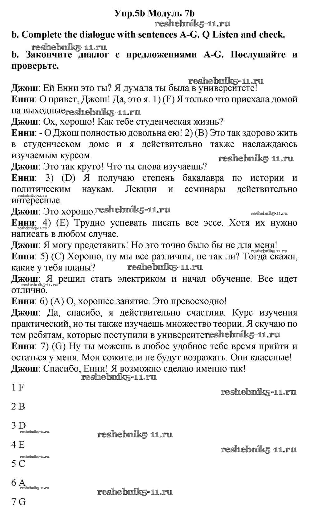 Готовая домашняя работа с ответами по Английскому языку за 11 класс Эванс, Дули, Оби, Афанасьева, Михеева Учебник Spotlight Просвещение 2015 ФГОС - Часть 7b 5b