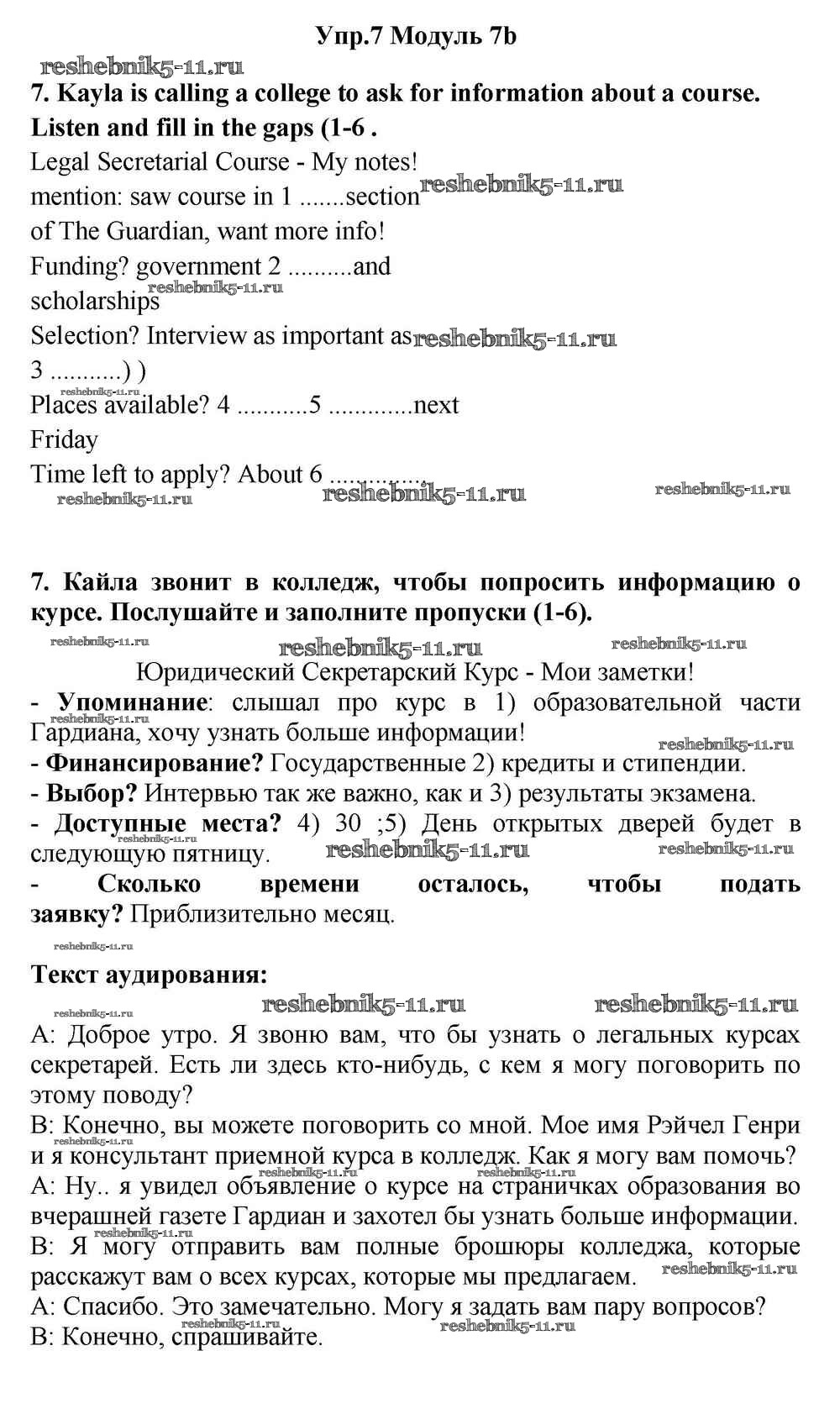 Готовая домашняя работа с ответами по Английскому языку за 11 класс Эванс, Дули, Оби, Афанасьева, Михеева Учебник Spotlight Просвещение 2015 ФГОС - Часть 7b 7