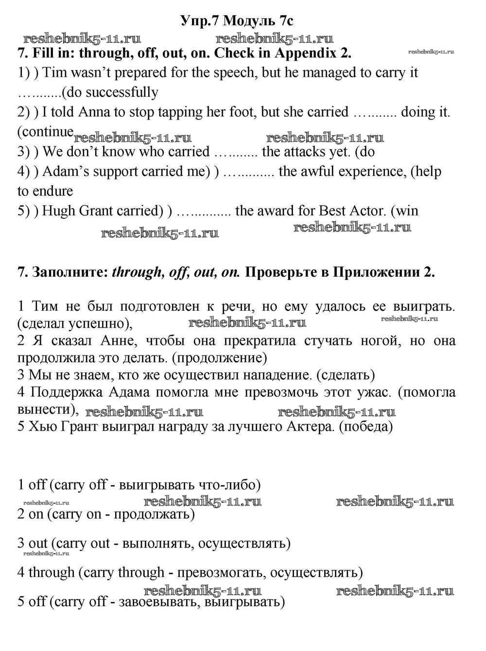 Готовая домашняя работа с ответами по Английскому языку за 11 класс Эванс, Дули, Оби, Афанасьева, Михеева Учебник Spotlight Просвещение 2015 ФГОС - Часть 7c 7