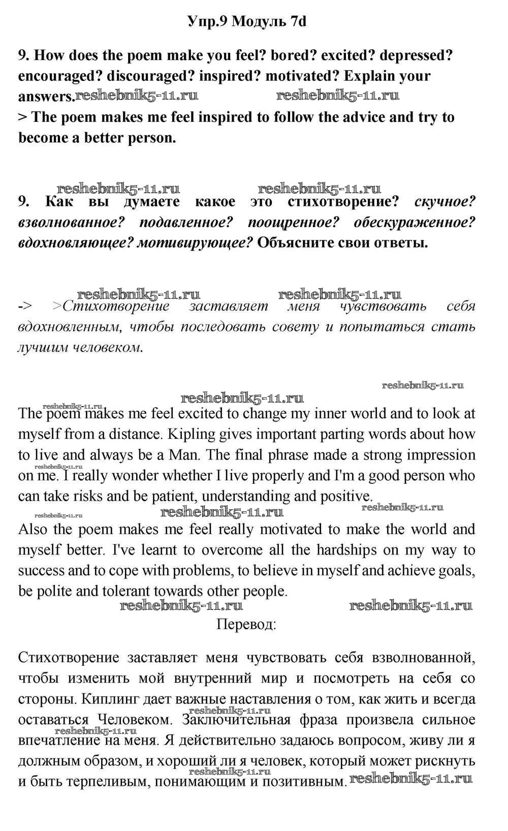 Готовая домашняя работа с ответами по Английскому языку за 11 класс Эванс, Дули, Оби, Афанасьева, Михеева Учебник Spotlight Просвещение 2015 ФГОС - Часть 7d 9