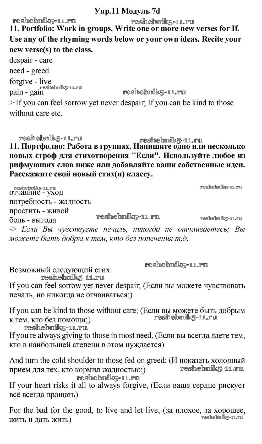 Готовая домашняя работа с ответами по Английскому языку за 11 класс Эванс, Дули, Оби, Афанасьева, Михеева Учебник Spotlight Просвещение 2015 ФГОС - Часть 7d 11