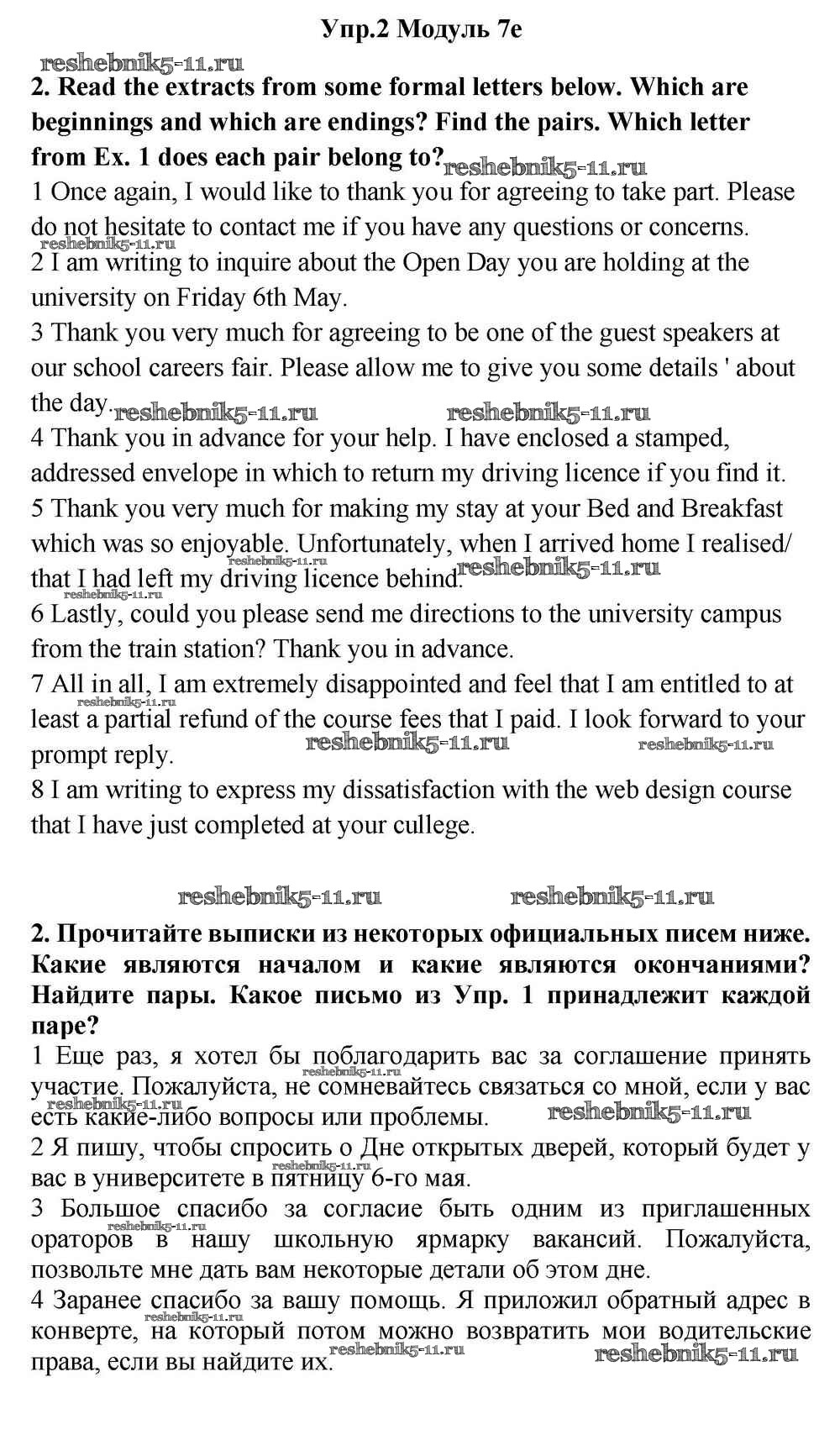Готовая домашняя работа с ответами по Английскому языку за 11 класс Эванс, Дули, Оби, Афанасьева, Михеева Учебник Spotlight Просвещение 2015 ФГОС - Часть 7e 2
