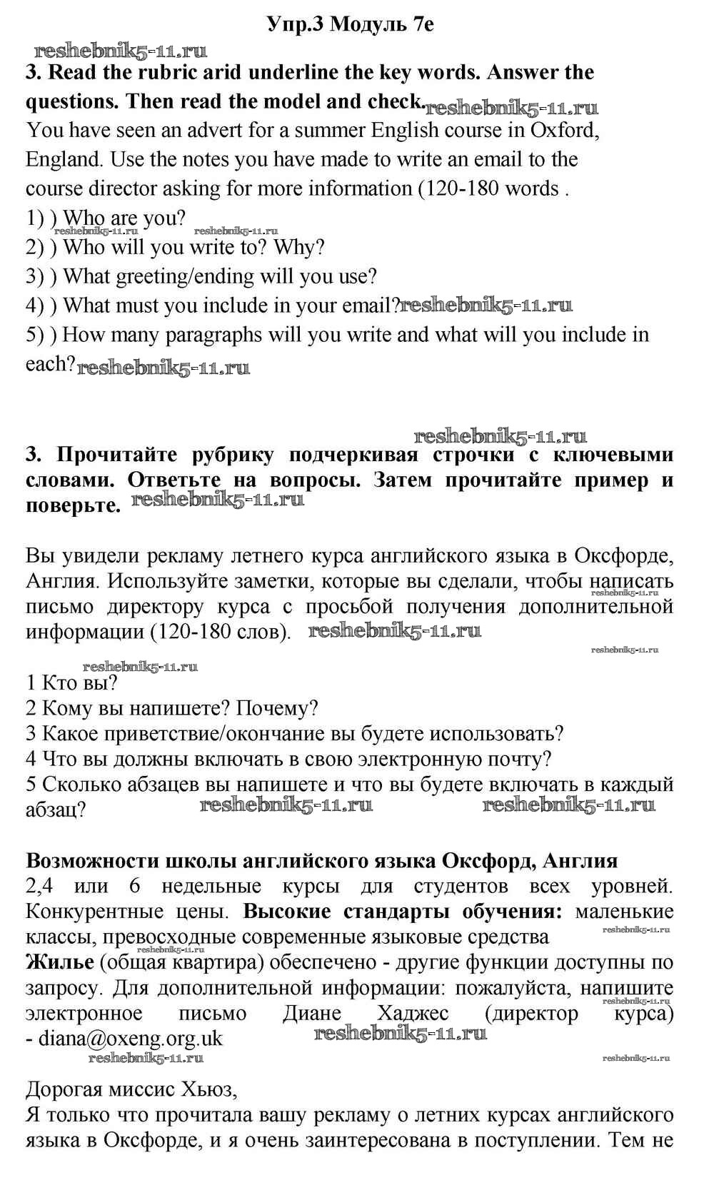 Готовая домашняя работа с ответами по Английскому языку за 11 класс Эванс, Дули, Оби, Афанасьева, Михеева Учебник Spotlight Просвещение 2015 ФГОС - Часть 7e 3