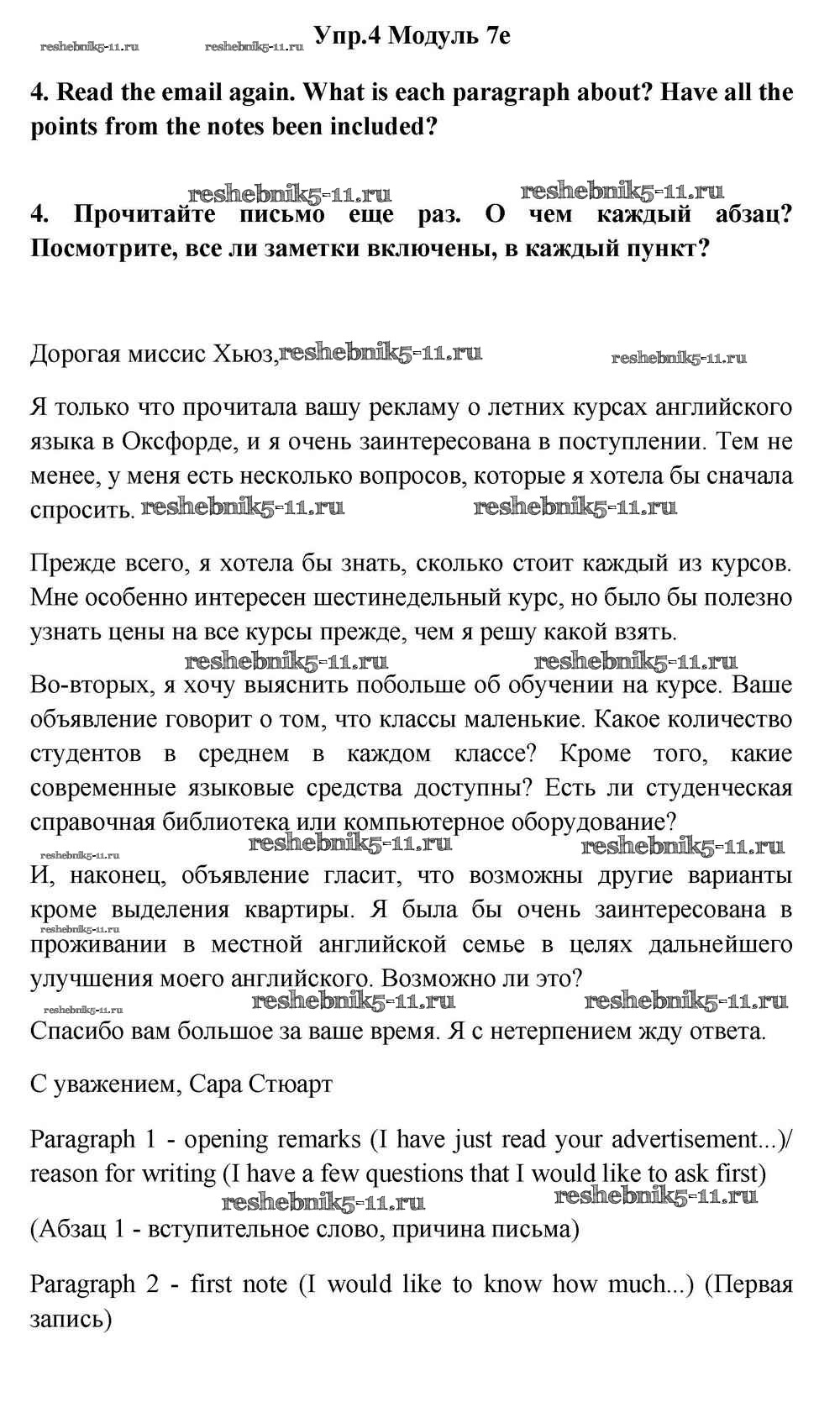 Готовая домашняя работа с ответами по Английскому языку за 11 класс Эванс, Дули, Оби, Афанасьева, Михеева Учебник Spotlight Просвещение 2015 ФГОС - Часть 7e 4