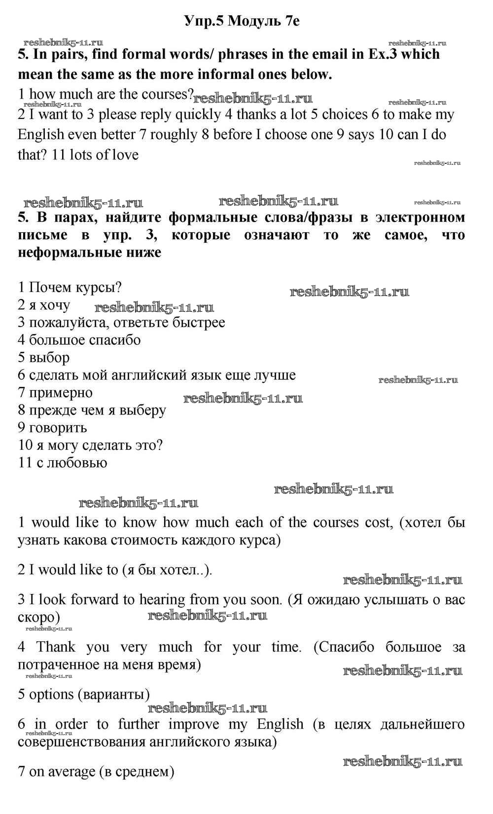 Готовая домашняя работа с ответами по Английскому языку за 11 класс Эванс, Дули, Оби, Афанасьева, Михеева Учебник Spotlight Просвещение 2015 ФГОС - Часть 7e 5