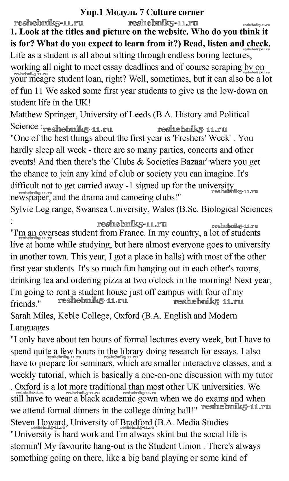Готовая домашняя работа с ответами по Английскому языку за 11 класс Эванс, Дули, Оби, Афанасьева, Михеева Учебник Spotlight Просвещение 2015 ФГОС - Culture corner 1