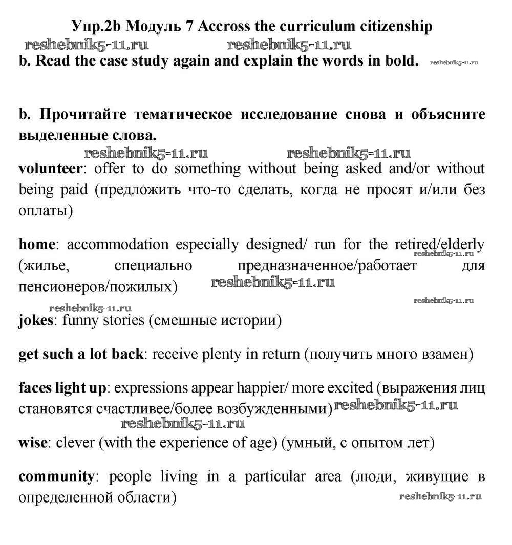 Готовая домашняя работа с ответами по Английскому языку за 11 класс Эванс, Дули, Оби, Афанасьева, Михеева Учебник Spotlight Просвещение 2015 ФГОС - Accross the curriculum citizenship 2b