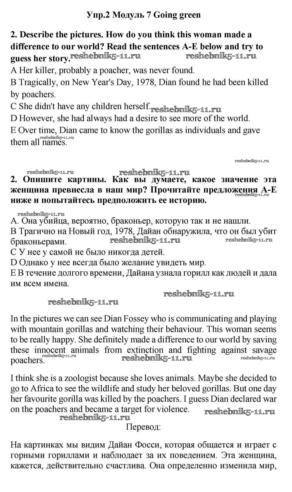 Готовая домашняя работа с ответами по Английскому языку за 11 класс Эванс, Дули, Оби, Афанасьева, Михеева Учебник Spotlight Просвещение 2015 ФГОС - Going green 2
