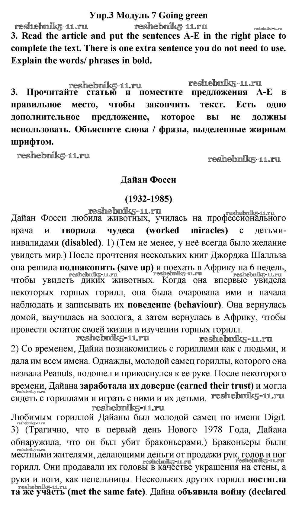Готовая домашняя работа с ответами по Английскому языку за 11 класс Эванс, Дули, Оби, Афанасьева, Михеева Учебник Spotlight Просвещение 2015 ФГОС - Going green 3