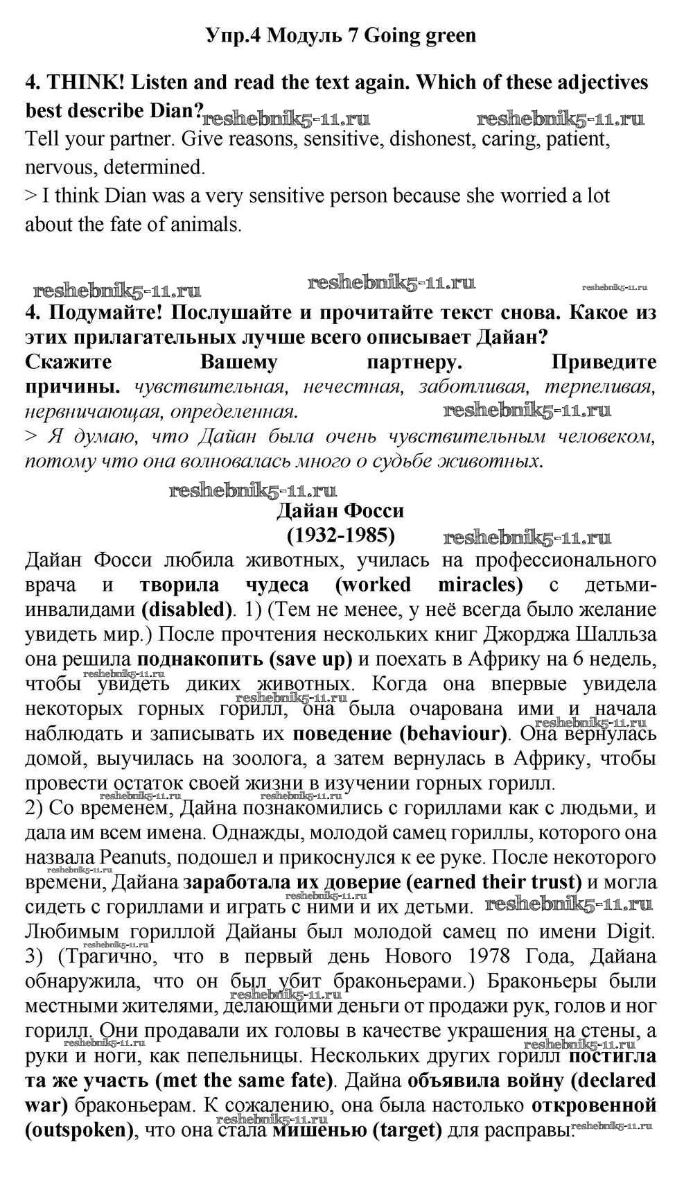Готовая домашняя работа с ответами по Английскому языку за 11 класс Эванс, Дули, Оби, Афанасьева, Михеева Учебник Spotlight Просвещение 2015 ФГОС - Going green 4