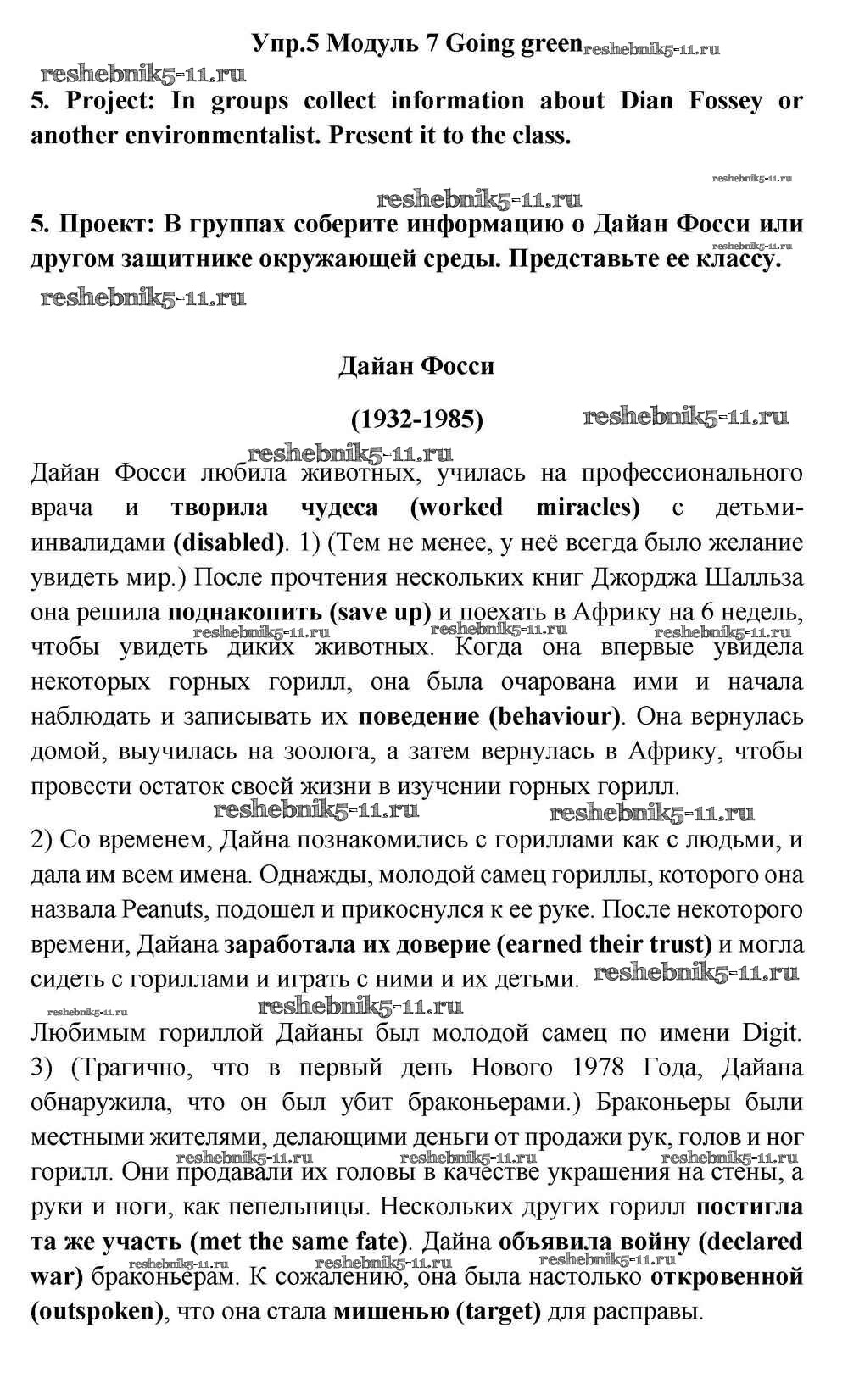 Готовая домашняя работа с ответами по Английскому языку за 11 класс Эванс, Дули, Оби, Афанасьева, Михеева Учебник Spotlight Просвещение 2015 ФГОС - Going green 5