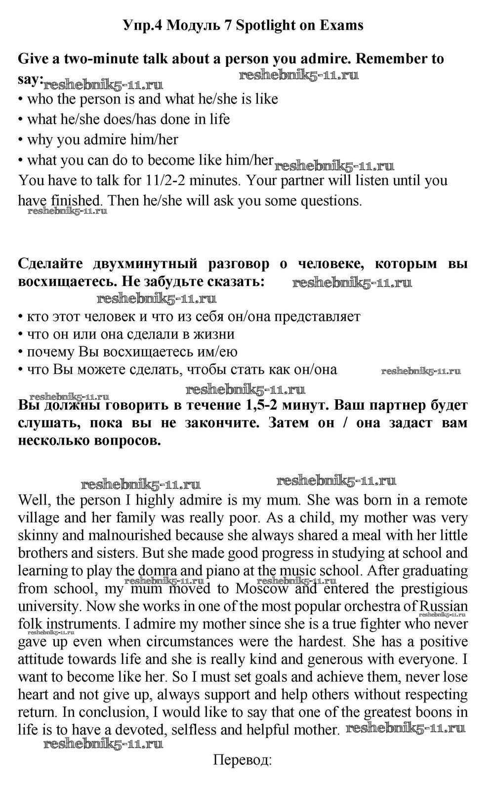 Готовая домашняя работа с ответами по Английскому языку за 11 класс Эванс, Дули, Оби, Афанасьева, Михеева Учебник Spotlight Просвещение 2015 ФГОС - Spotlight on Exams 4