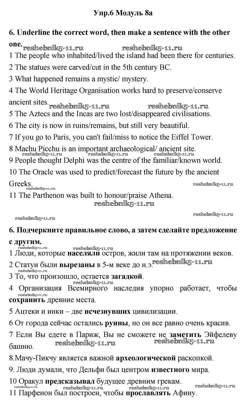 Готовая домашняя работа с ответами по Английскому языку за 11 класс Эванс, Дули, Оби, Афанасьева, Михеева Учебник Spotlight Просвещение 2015 ФГОС - Часть 8а 6