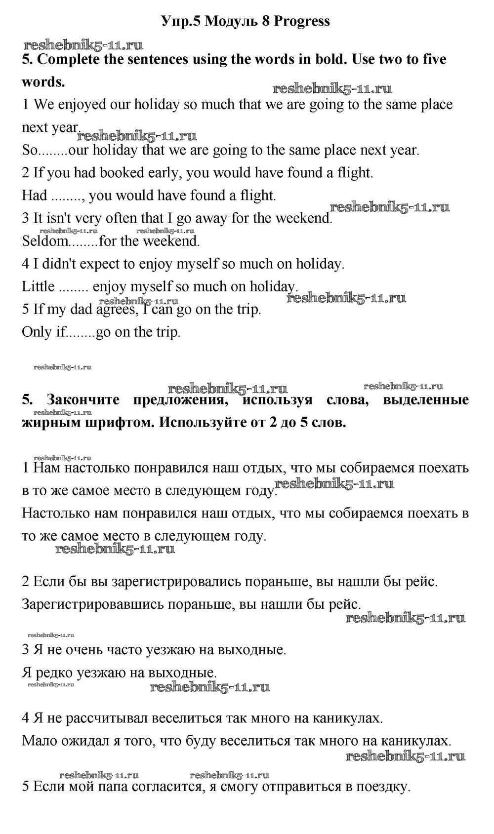 Готовая домашняя работа с ответами по Английскому языку за 11 класс Эванс, Дули, Оби, Афанасьева, Михеева Учебник Spotlight Просвещение 2015 ФГОС - Progress Check 5
