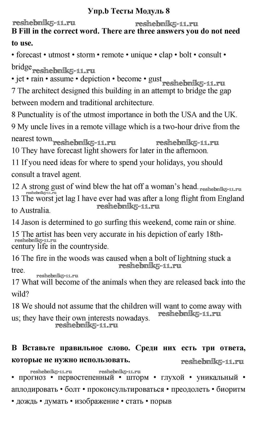 Готовая домашняя работа с ответами по Английскому языку за 11 класс Эванс, Дули, Оби, Афанасьева, Михеева Учебник Spotlight Просвещение 2015 ФГОС - Тесты B