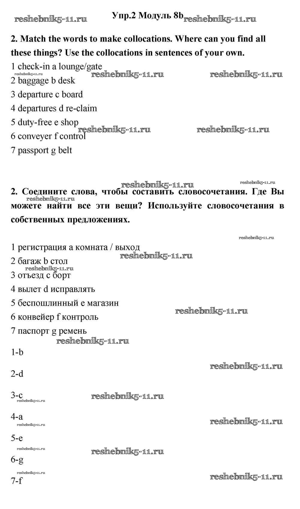 Готовая домашняя работа с ответами по Английскому языку за 11 класс Эванс, Дули, Оби, Афанасьева, Михеева Учебник Spotlight Просвещение 2015 ФГОС - Часть 8b 2