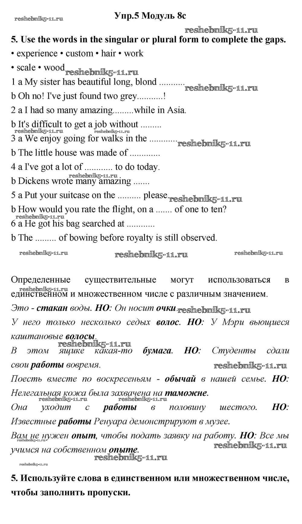 Готовая домашняя работа с ответами по Английскому языку за 11 класс Эванс, Дули, Оби, Афанасьева, Михеева Учебник Spotlight Просвещение 2015 ФГОС - Часть 8c 5