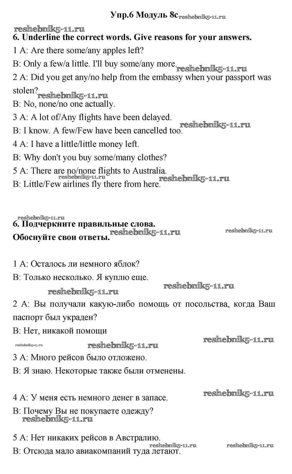 Готовая домашняя работа с ответами по Английскому языку за 11 класс Эванс, Дули, Оби, Афанасьева, Михеева Учебник Spotlight Просвещение 2015 ФГОС - Часть 8c 6