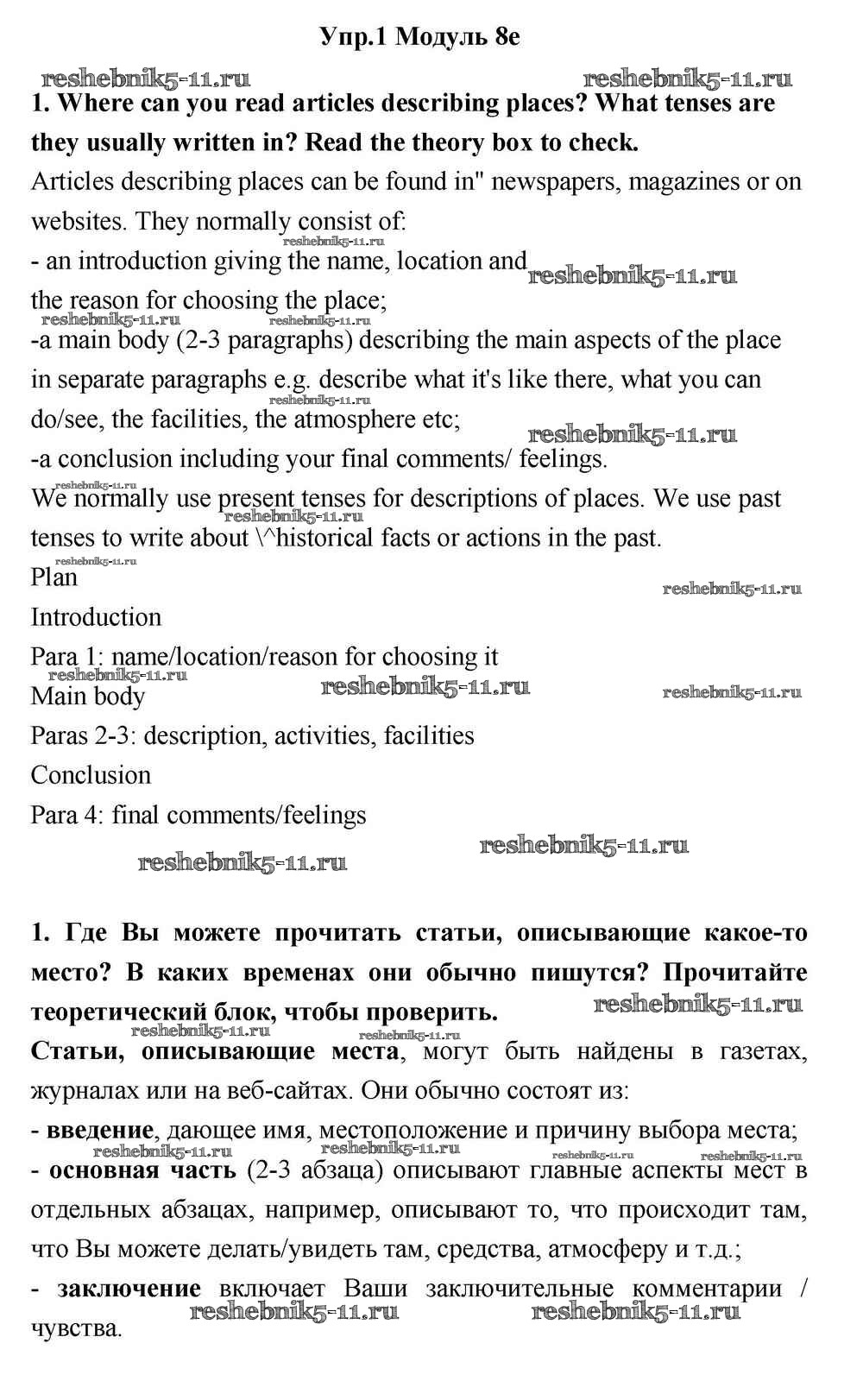Готовая домашняя работа с ответами по Английскому языку за 11 класс Эванс, Дули, Оби, Афанасьева, Михеева Учебник Spotlight Просвещение 2015 ФГОС - Часть 8e 1