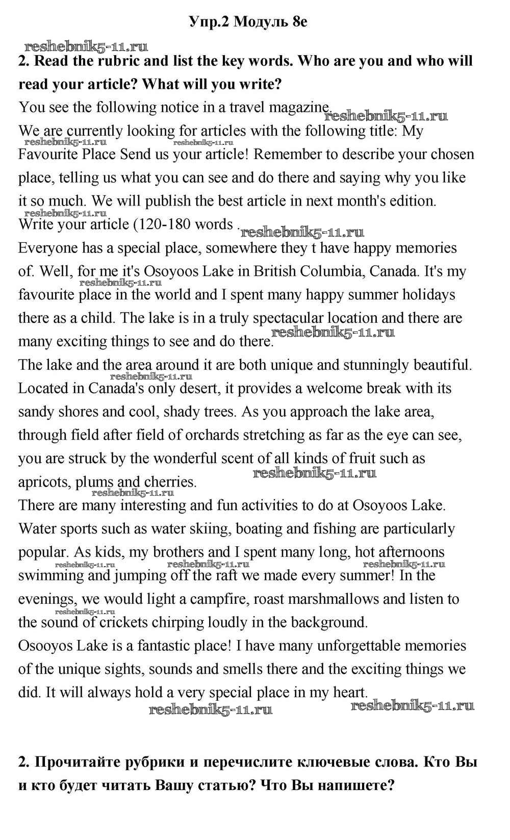 Готовая домашняя работа с ответами по Английскому языку за 11 класс Эванс, Дули, Оби, Афанасьева, Михеева Учебник Spotlight Просвещение 2015 ФГОС - Часть 8e 2