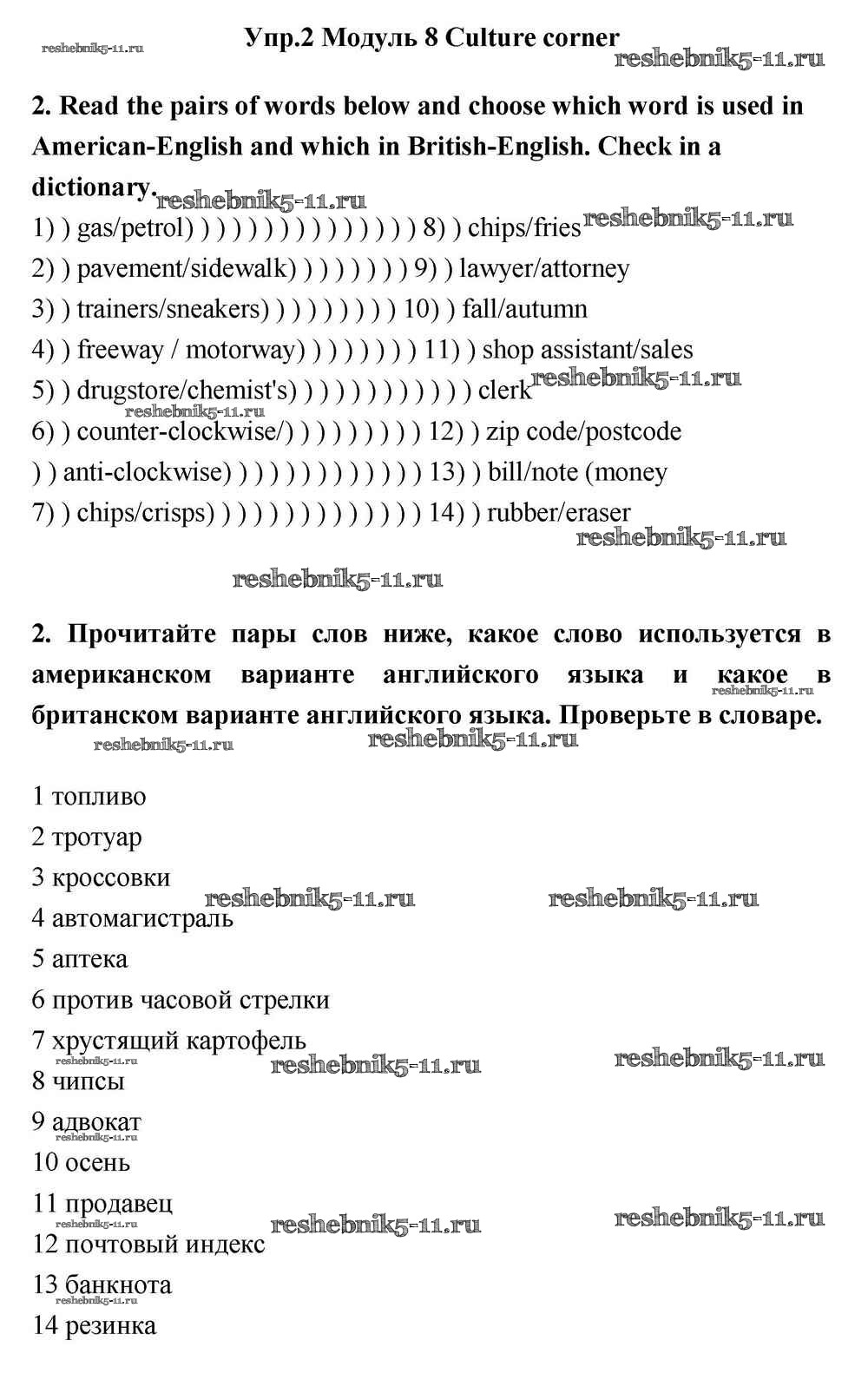 Решебник / module 8 / culture corner / 2
