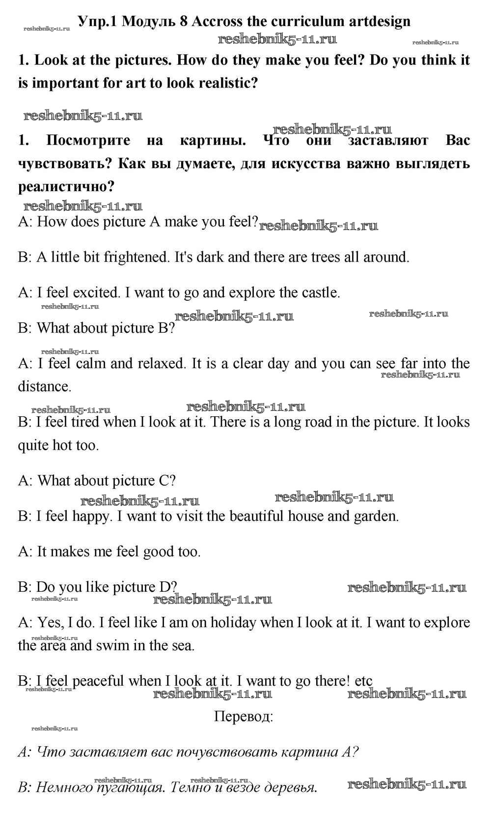 Готовая домашняя работа с ответами по Английскому языку за 11 класс Эванс, Дули, Оби, Афанасьева, Михеева Учебник Spotlight Просвещение 2015 ФГОС - Accross the curriculum art&design 1