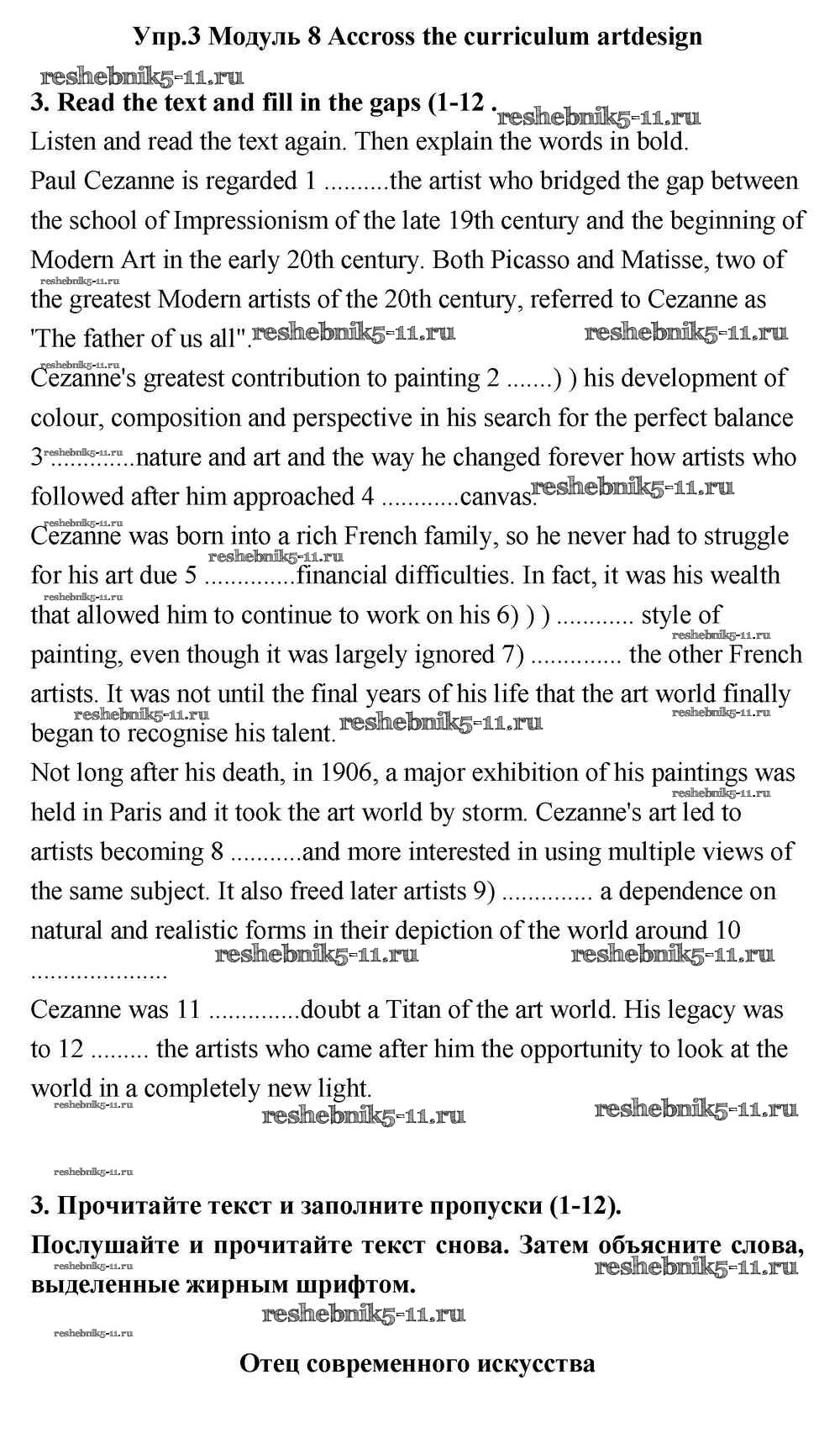 Готовая домашняя работа с ответами по Английскому языку за 11 класс Эванс, Дули, Оби, Афанасьева, Михеева Учебник Spotlight Просвещение 2015 ФГОС - Accross the curriculum art&design 3