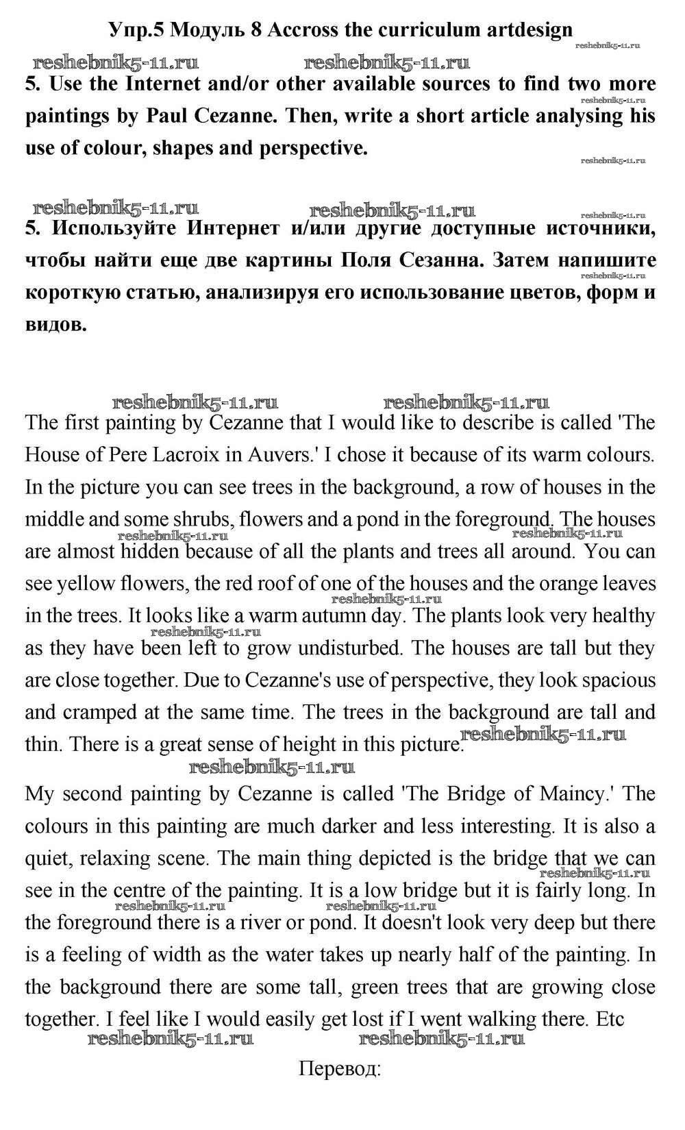 Готовая домашняя работа с ответами по Английскому языку за 11 класс Эванс, Дули, Оби, Афанасьева, Михеева Учебник Spotlight Просвещение 2015 ФГОС - Accross the curriculum art&design 5