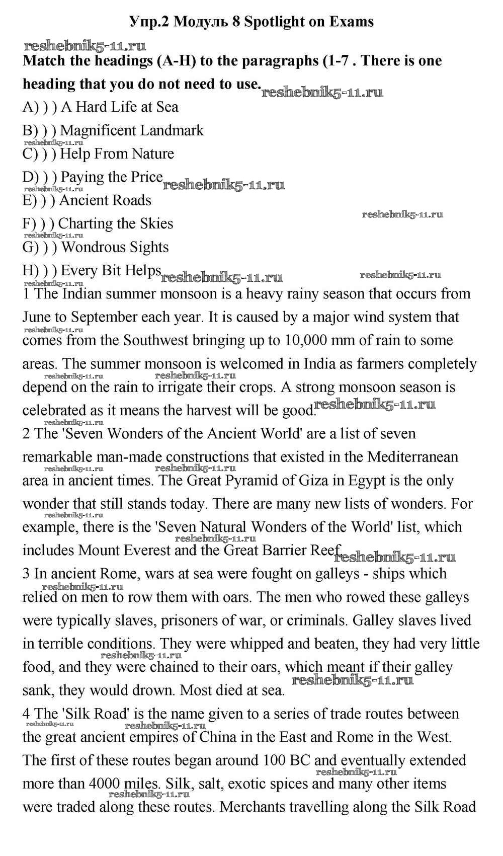 Готовая домашняя работа с ответами по Английскому языку за 11 класс Эванс, Дули, Оби, Афанасьева, Михеева Учебник Spotlight Просвещение 2015 ФГОС - Spotlight on Exams 2
