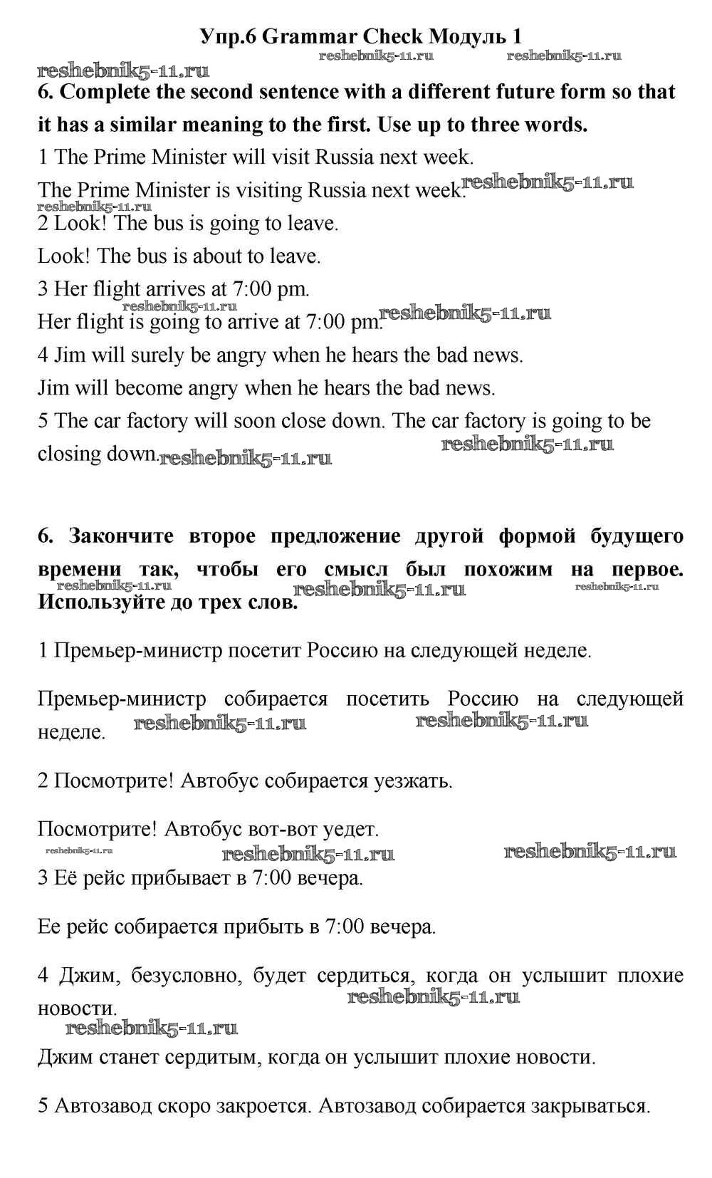 Готовая домашняя работа с ответами по Английскому языку за 11 класс Эванс, Дули, Оби, Афанасьева, Михеева Учебник Spotlight Просвещение 2015 ФГОС - Module 1 6