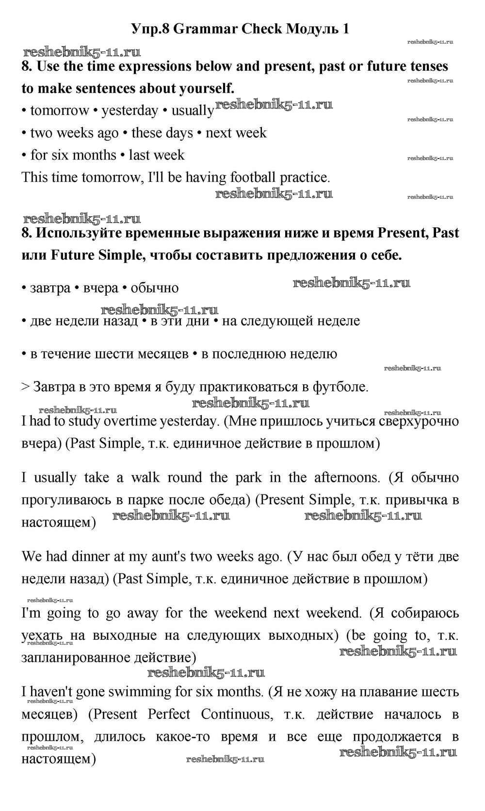 Готовая домашняя работа с ответами по Английскому языку за 11 класс Эванс, Дули, Оби, Афанасьева, Михеева Учебник Spotlight Просвещение 2015 ФГОС - Module 1 8
