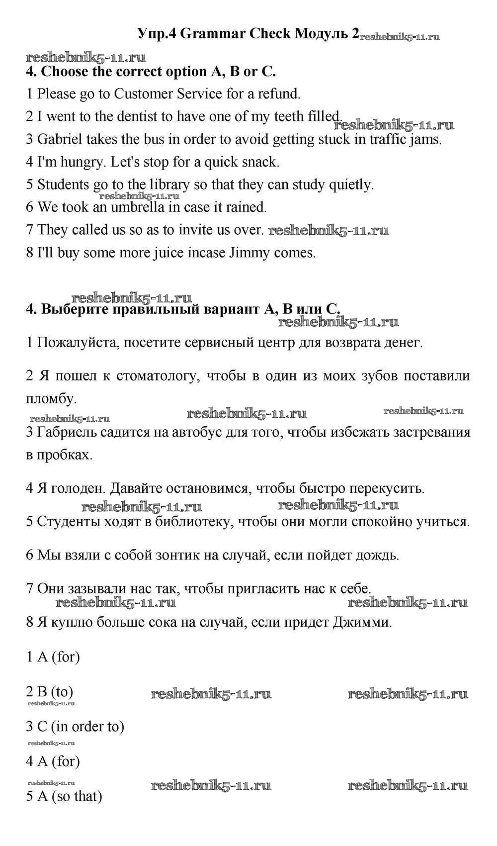 Готовая домашняя работа с ответами по Английскому языку за 11 класс Эванс, Дули, Оби, Афанасьева, Михеева Учебник Spotlight Просвещение 2015 ФГОС - Module 2 4