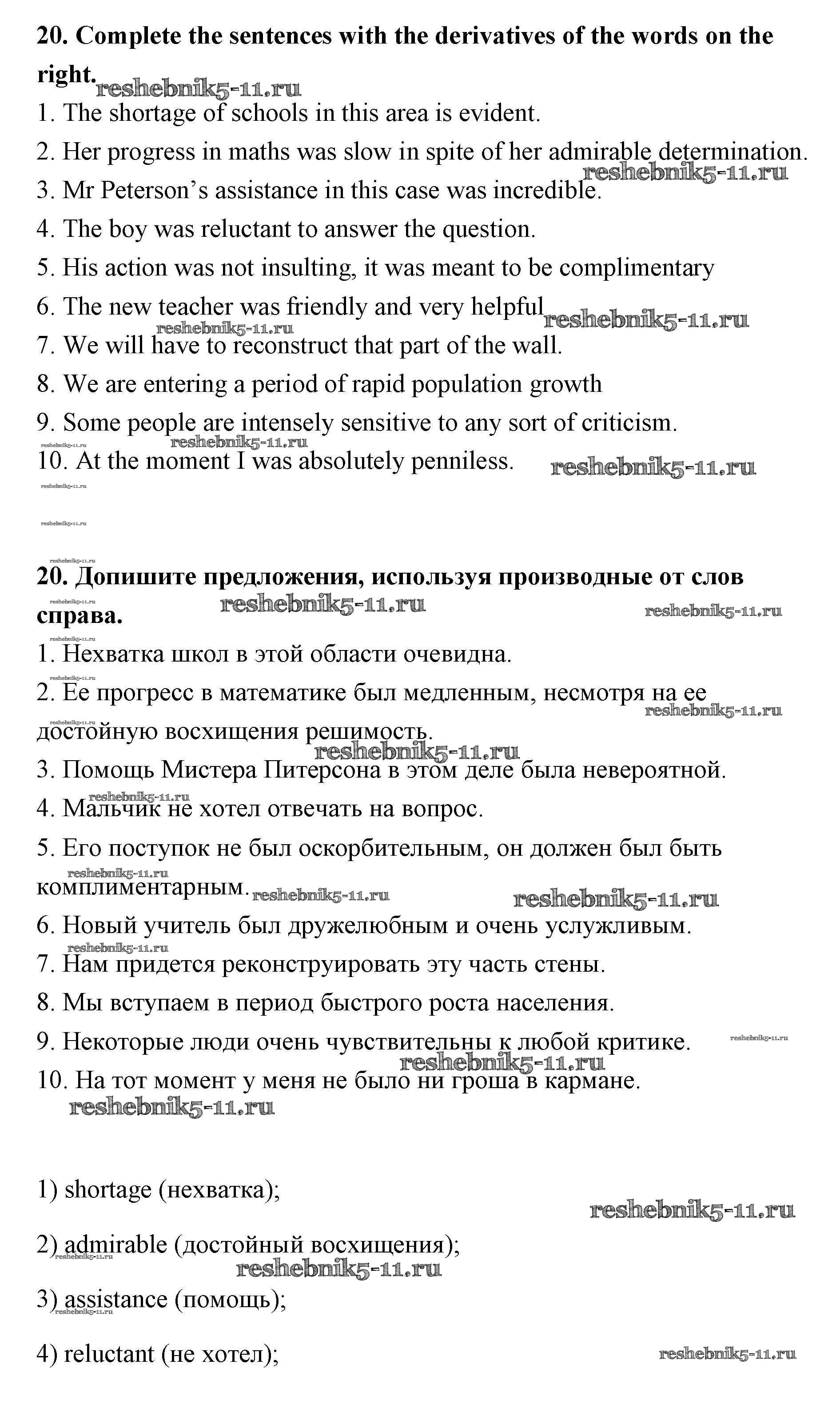 Английский язык за 11 класс Афанасьева Рабочая тетрадь Rainbow Базовый уровень Дрофа unit 1 20