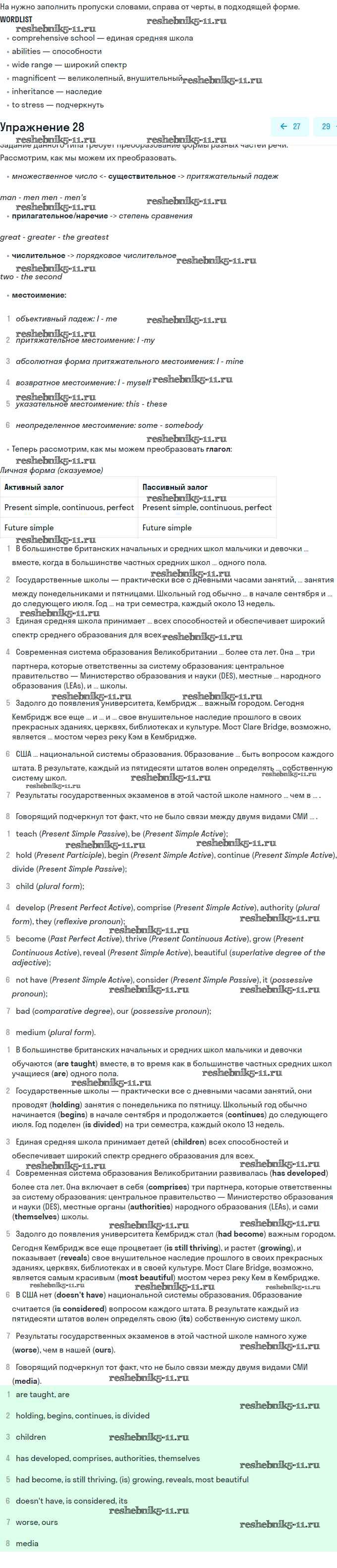 Готовая домашняя работа с ответами по Английскому языку за 11 класс Афанасьева, Михеева, Баранова Рабочая тетрадь Rainbow Базовый уровень Дрофа 2016 ФГОС - Unit 1. Steps to your career 28