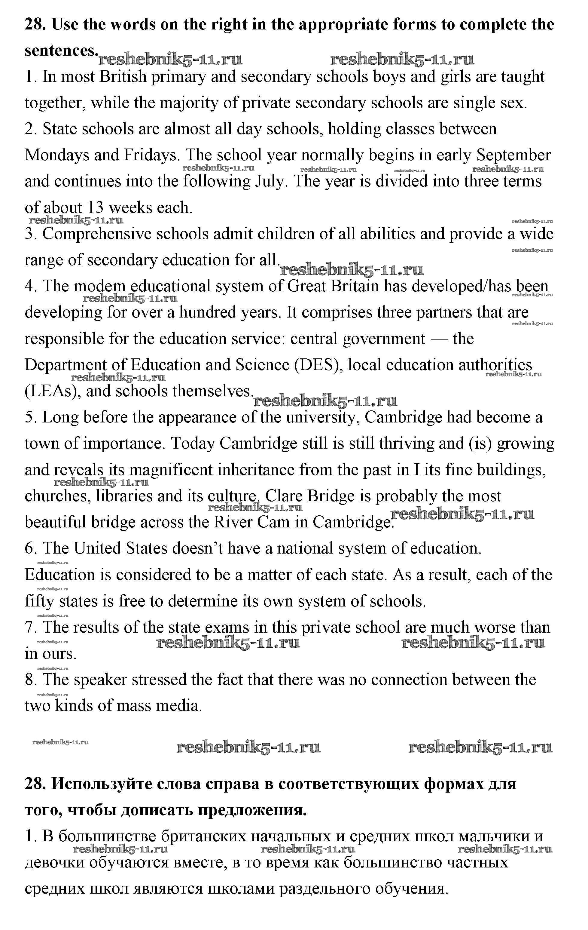 Английский язык за 11 класс Афанасьева Рабочая тетрадь Rainbow Базовый уровень Дрофа unit 1 28