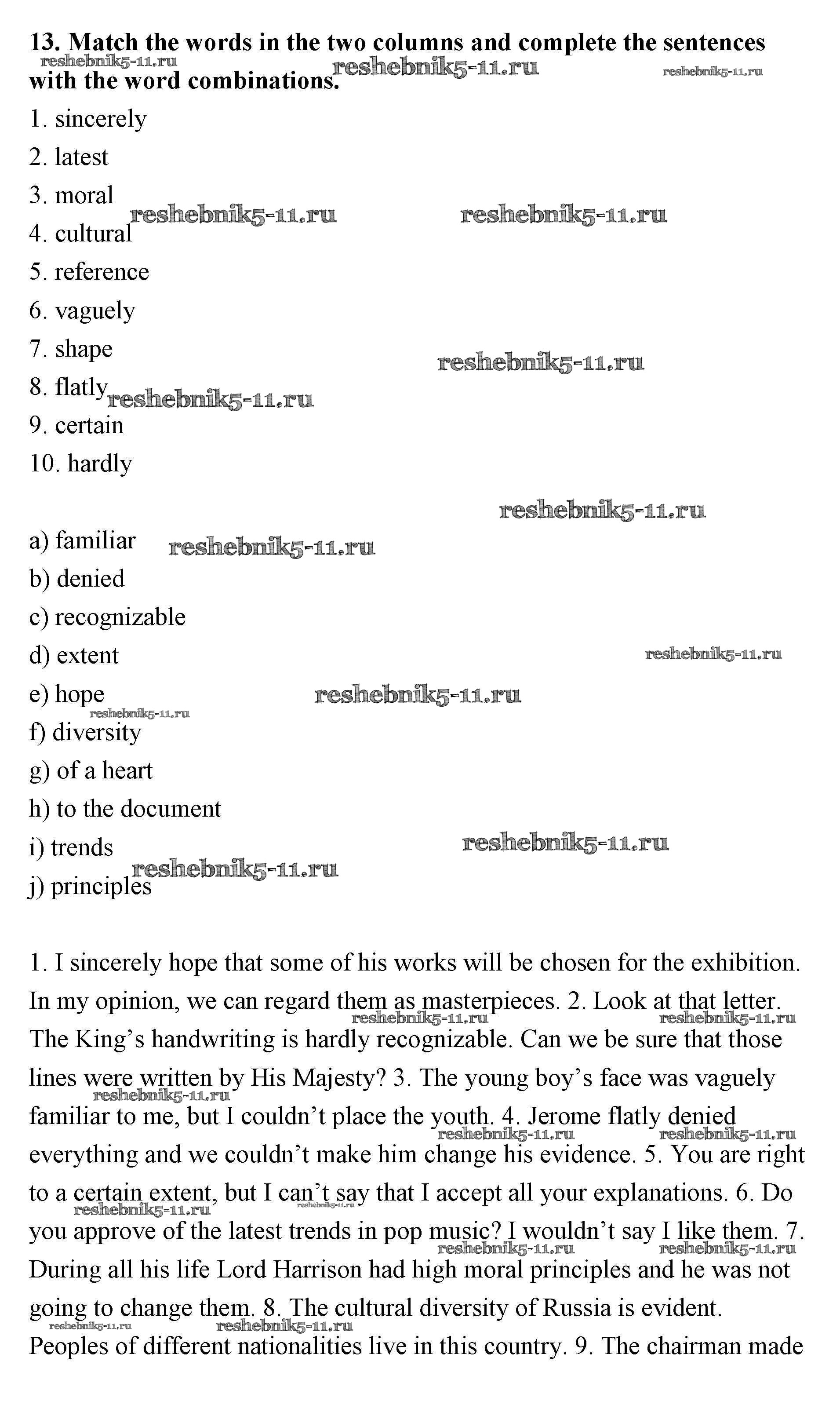 Готовая домашняя работа с ответами по Английскому языку за 11 класс Афанасьева, Михеева, Баранова Рабочая тетрадь Rainbow Базовый уровень Дрофа 2016 ФГОС - Unit 2. Steps to Understanding Culture 13