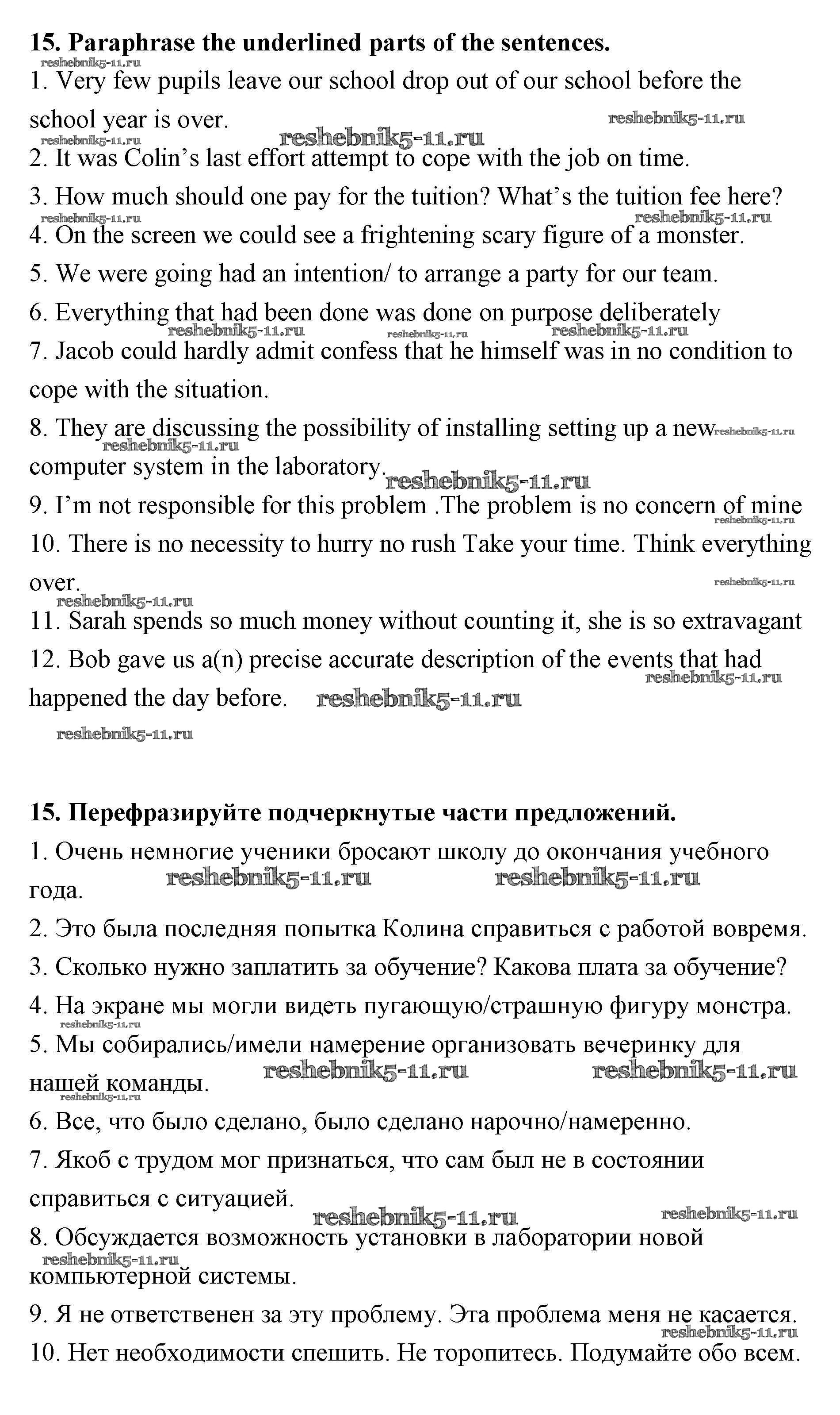 Готовая домашняя работа с ответами по Английскому языку за 11 класс Афанасьева, Михеева, Баранова Рабочая тетрадь Rainbow Базовый уровень Дрофа 2016 ФГОС - Unit 4. Steps to the future 15