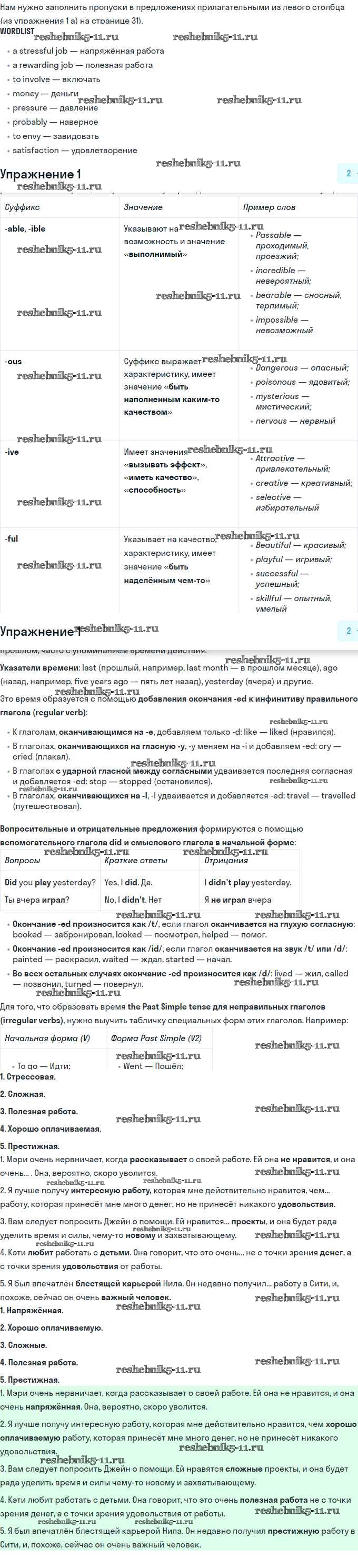 Готовая домашняя работа с ответами по Английскому языку за 11 класс Биболетова, Бабушис, Снежко Рабочая тетрадь Enjoy English Дрофа 2017 ФГОС - Section 1 1