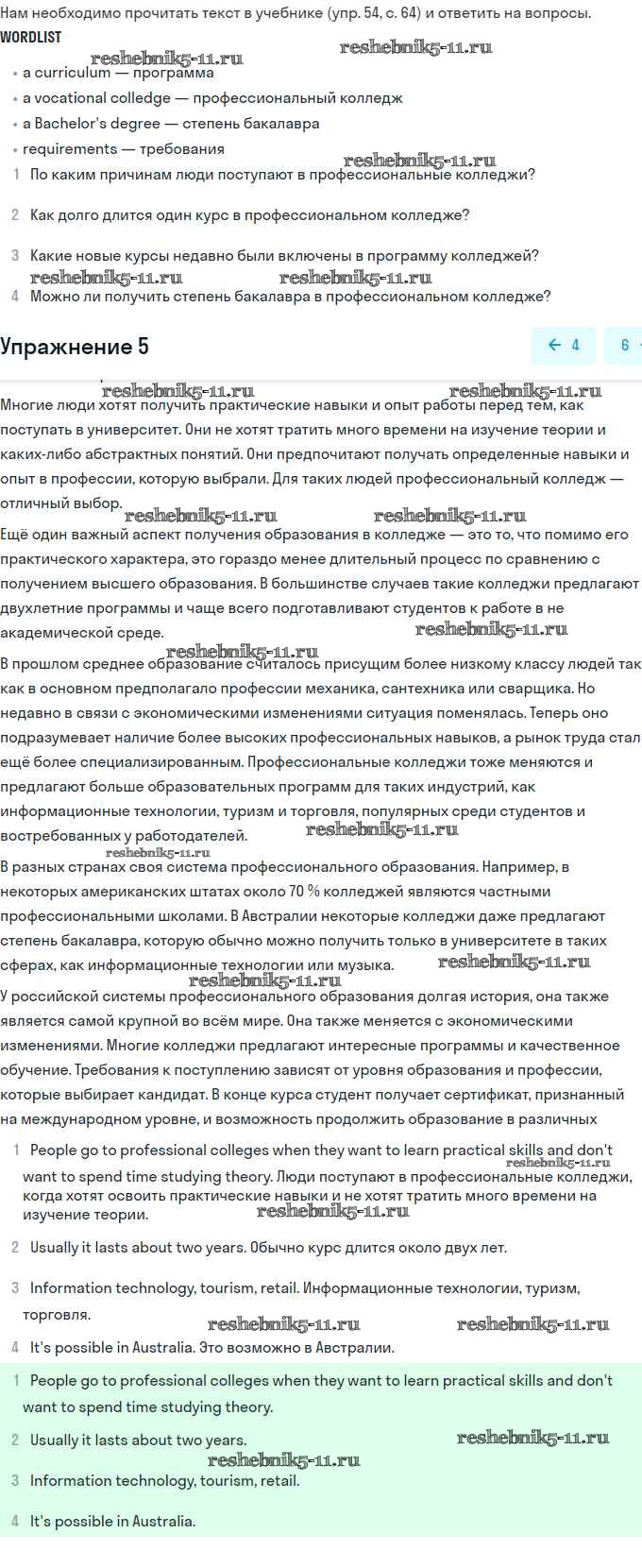Готовая домашняя работа с ответами по Английскому языку за 11 класс Биболетова, Бабушис, Снежко Рабочая тетрадь Enjoy English Дрофа 2017 ФГОС - Section 2 5