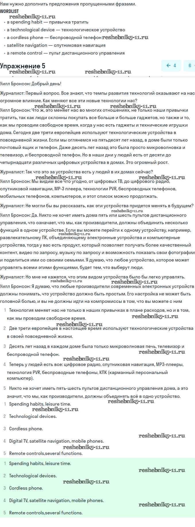 Готовая домашняя работа с ответами по Английскому языку за 11 класс Биболетова, Бабушис, Снежко Рабочая тетрадь Enjoy English Дрофа 2017 ФГОС - Section 1 5