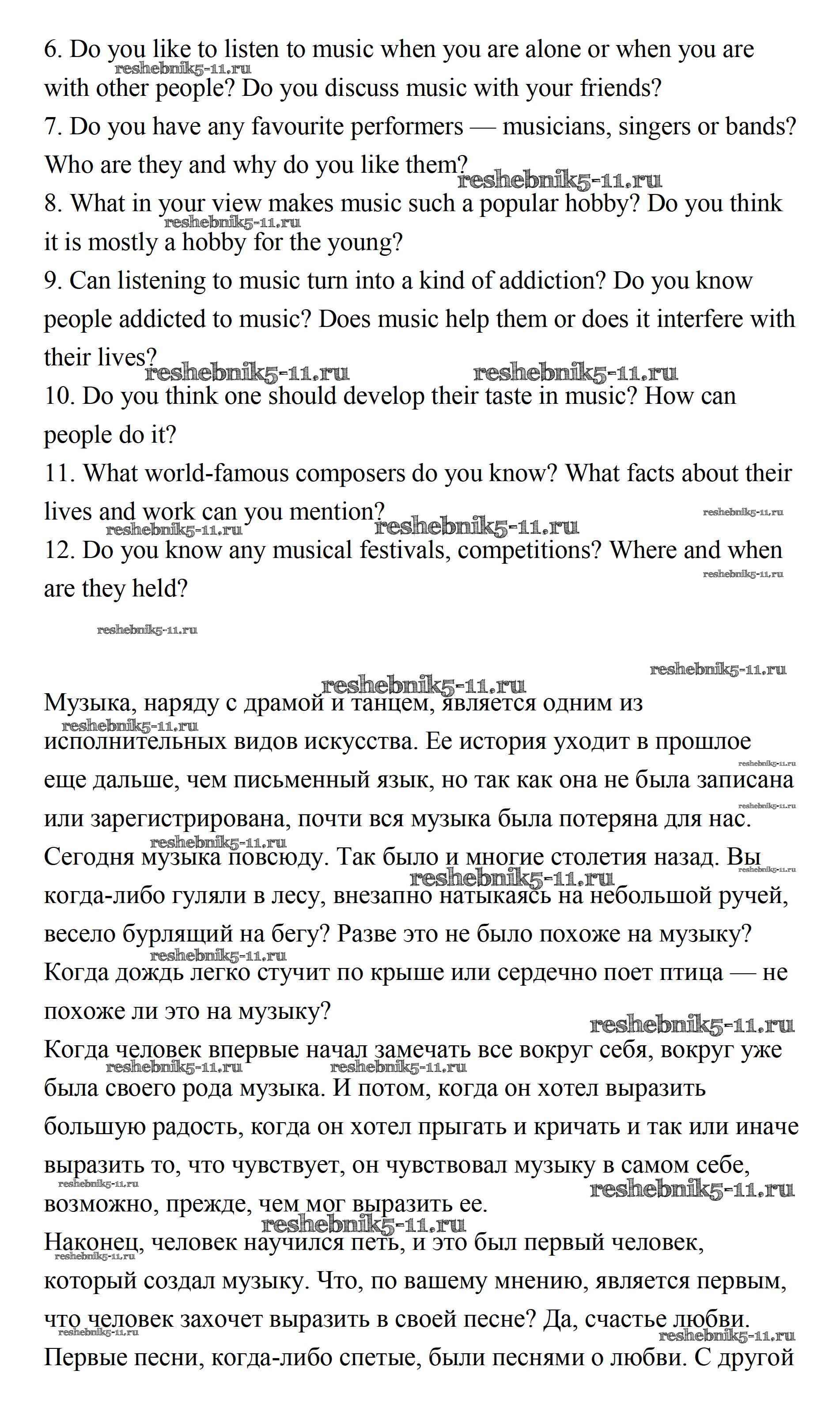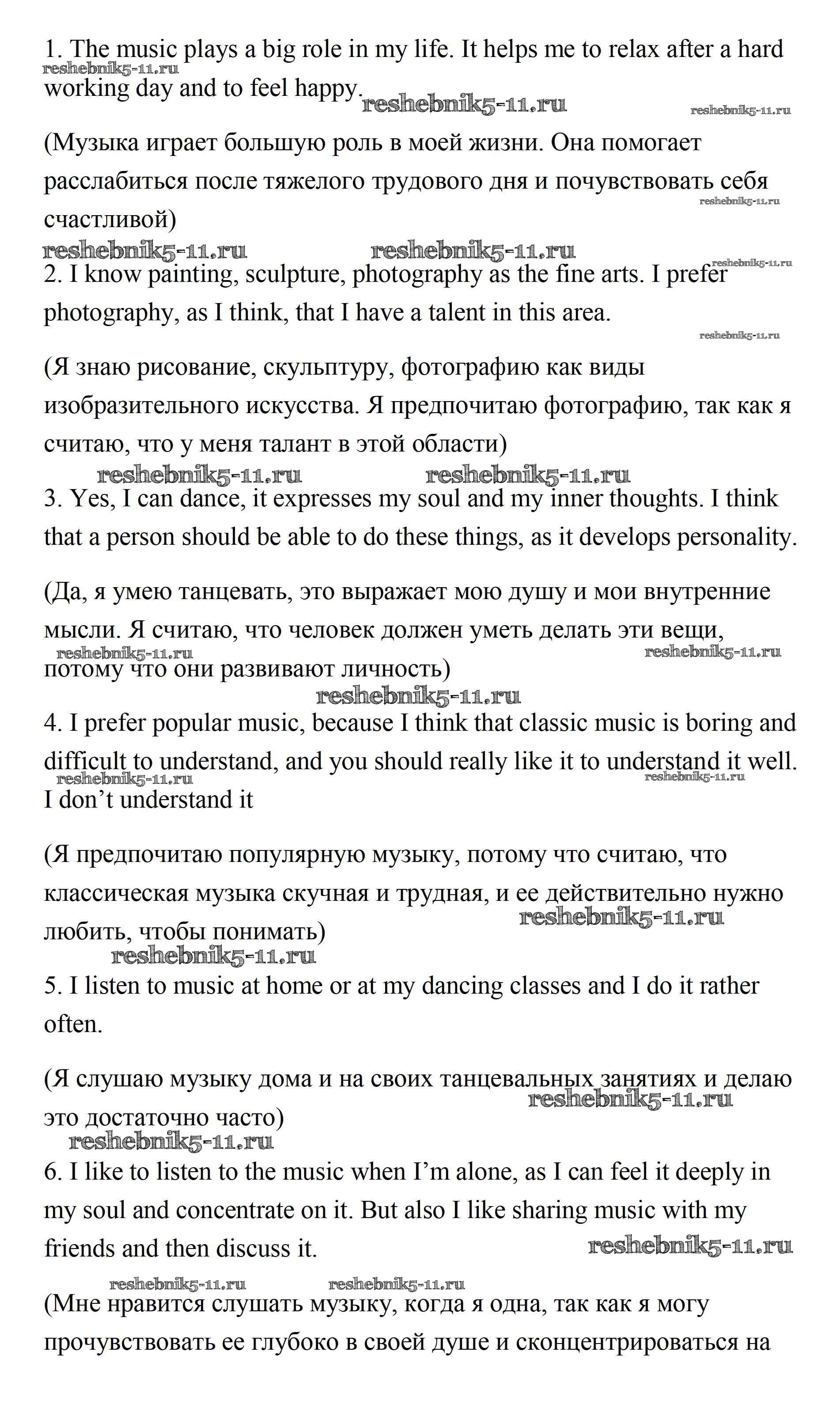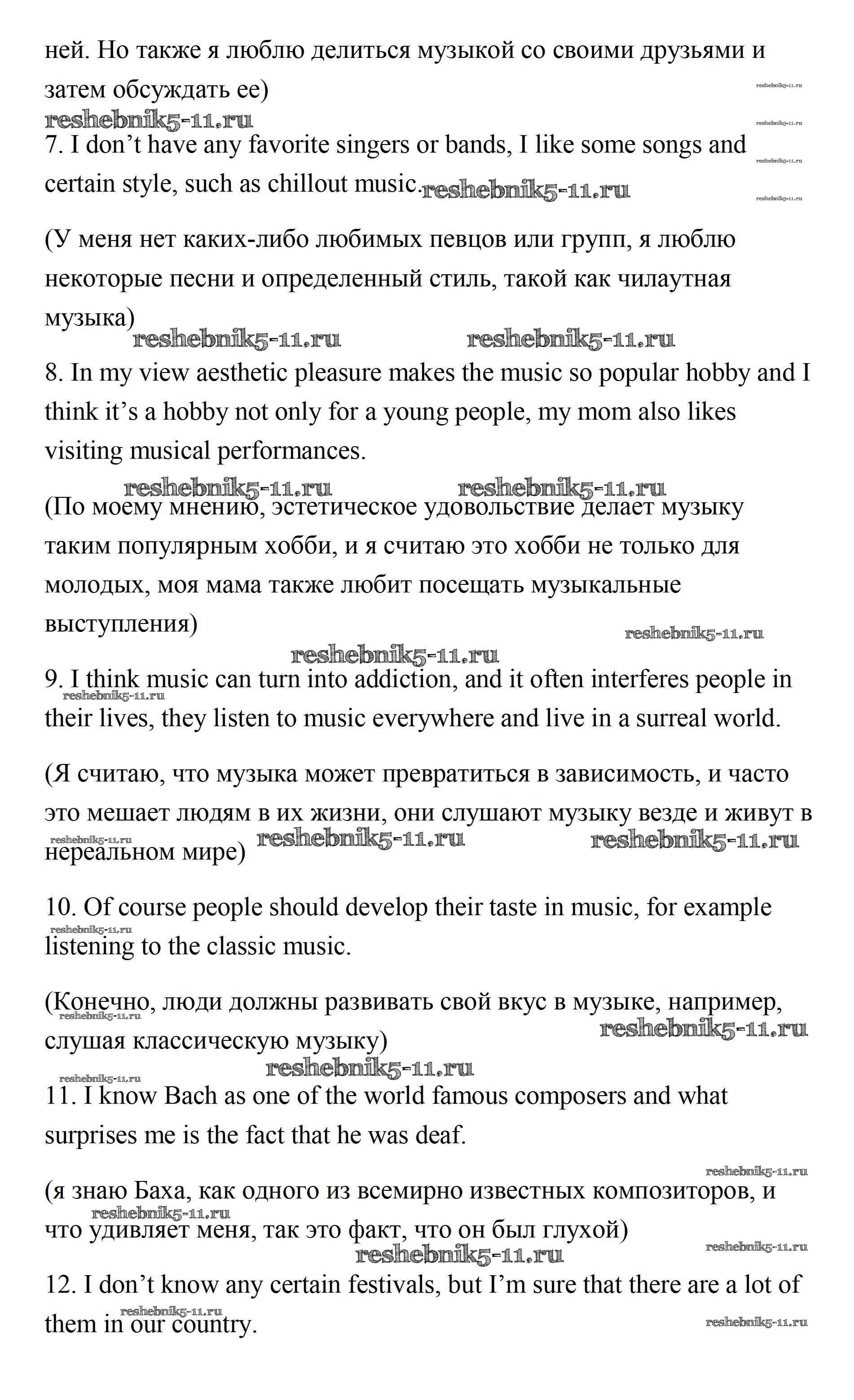 Готовая домашняя работа с ответами по Английскому языку за 11 класс Афанасьева, Михеева Учебник Углубленный уровень Просвещение 2015 ФГОС - Unit 1. Sounds of Music 1