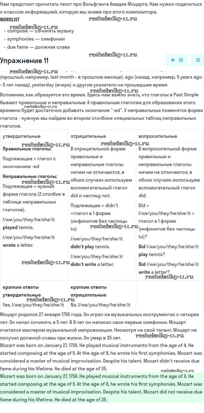 Готовая домашняя работа с ответами по Английскому языку за 11 класс Афанасьева, Михеева Учебник Углубленный уровень Просвещение 2015 ФГОС - Unit 1. Sounds of Music 11