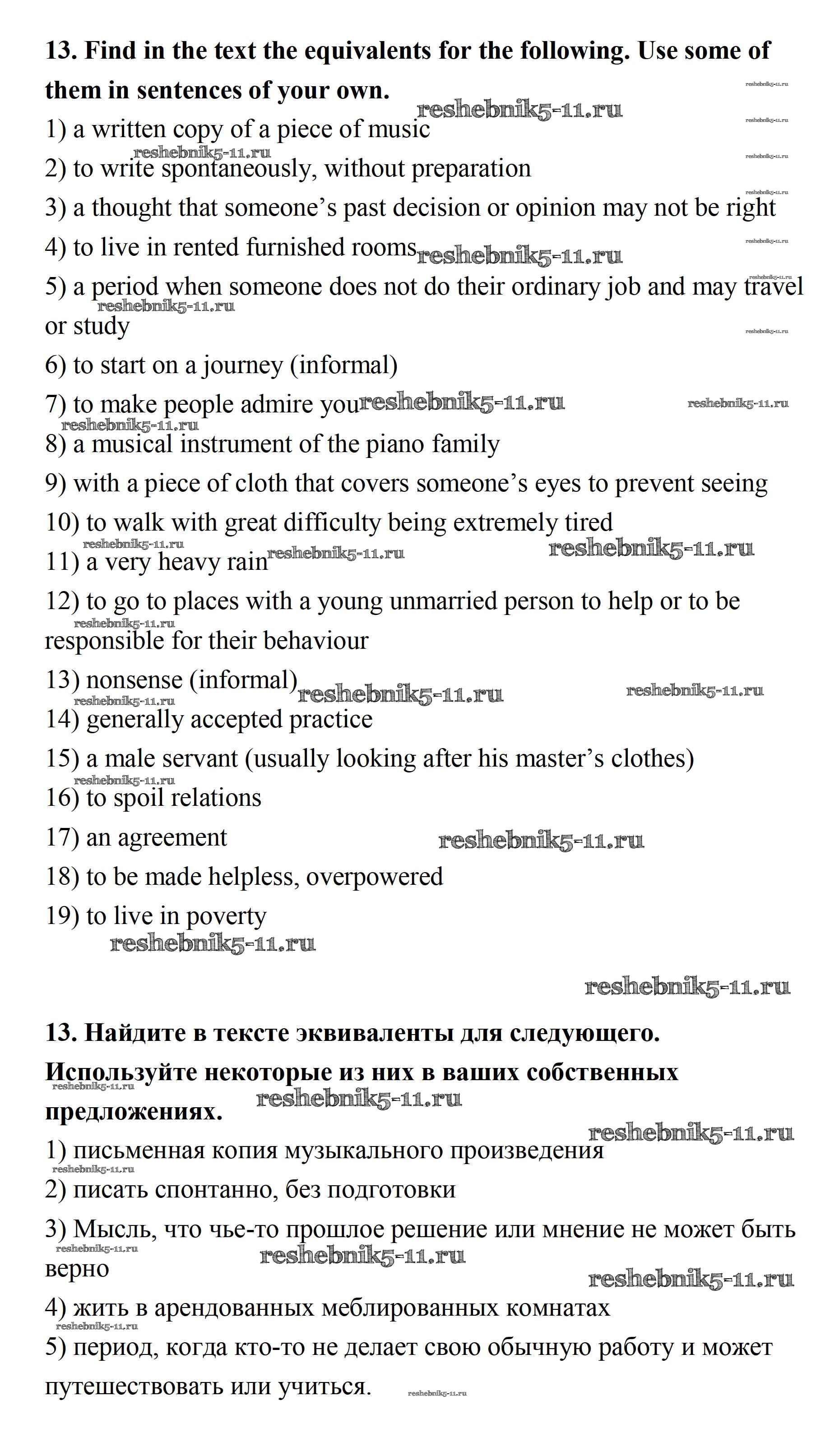 Готовая домашняя работа с ответами по Английскому языку за 11 класс Афанасьева, Михеева Учебник Углубленный уровень Просвещение 2015 ФГОС - Unit 1. Sounds of Music 13