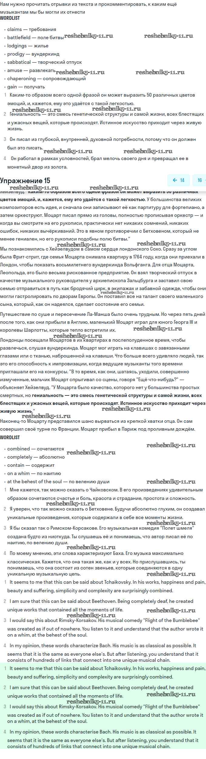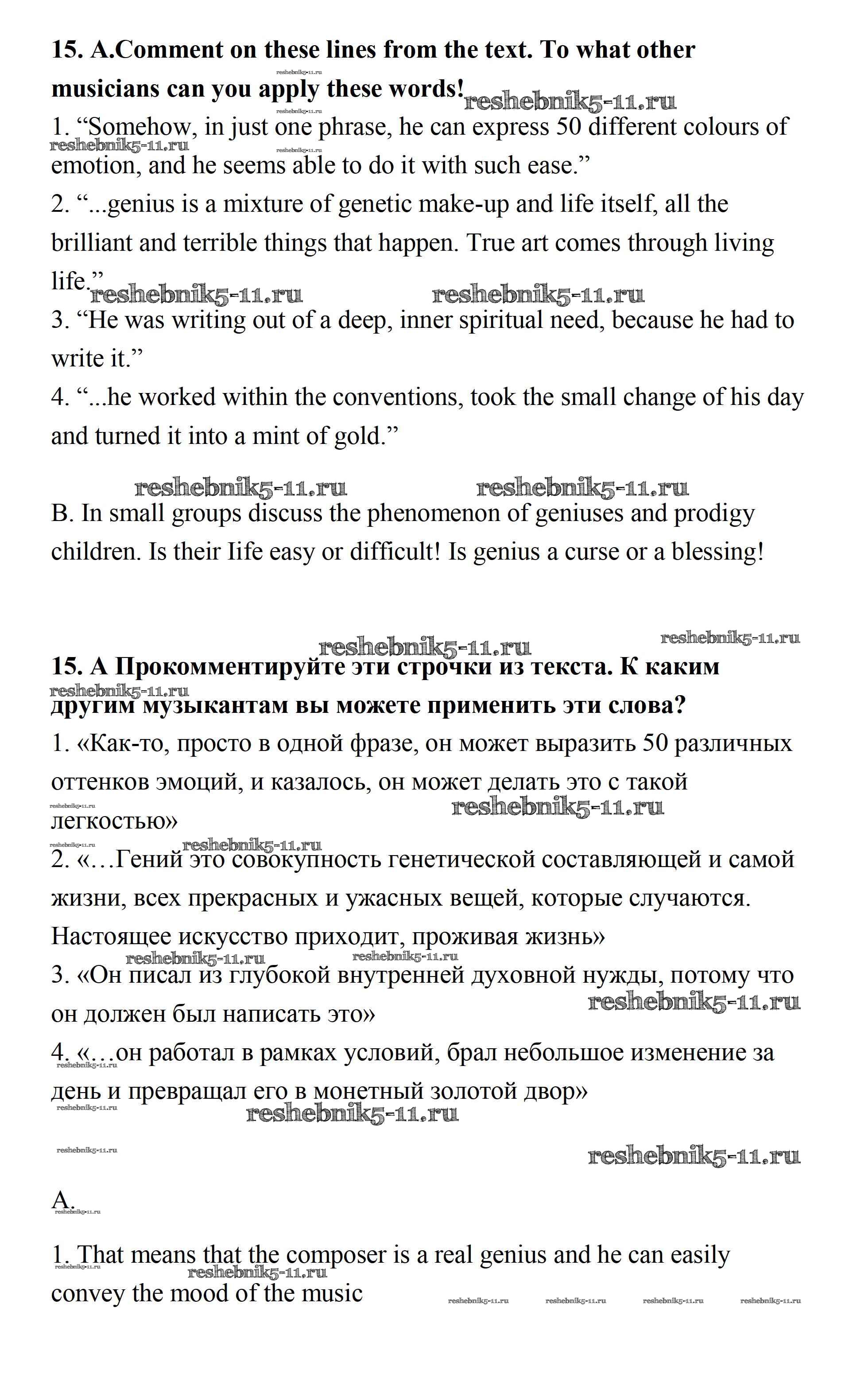 Готовая домашняя работа с ответами по Английскому языку за 11 класс Афанасьева, Михеева Учебник Углубленный уровень Просвещение 2015 ФГОС - Unit 1. Sounds of Music 15