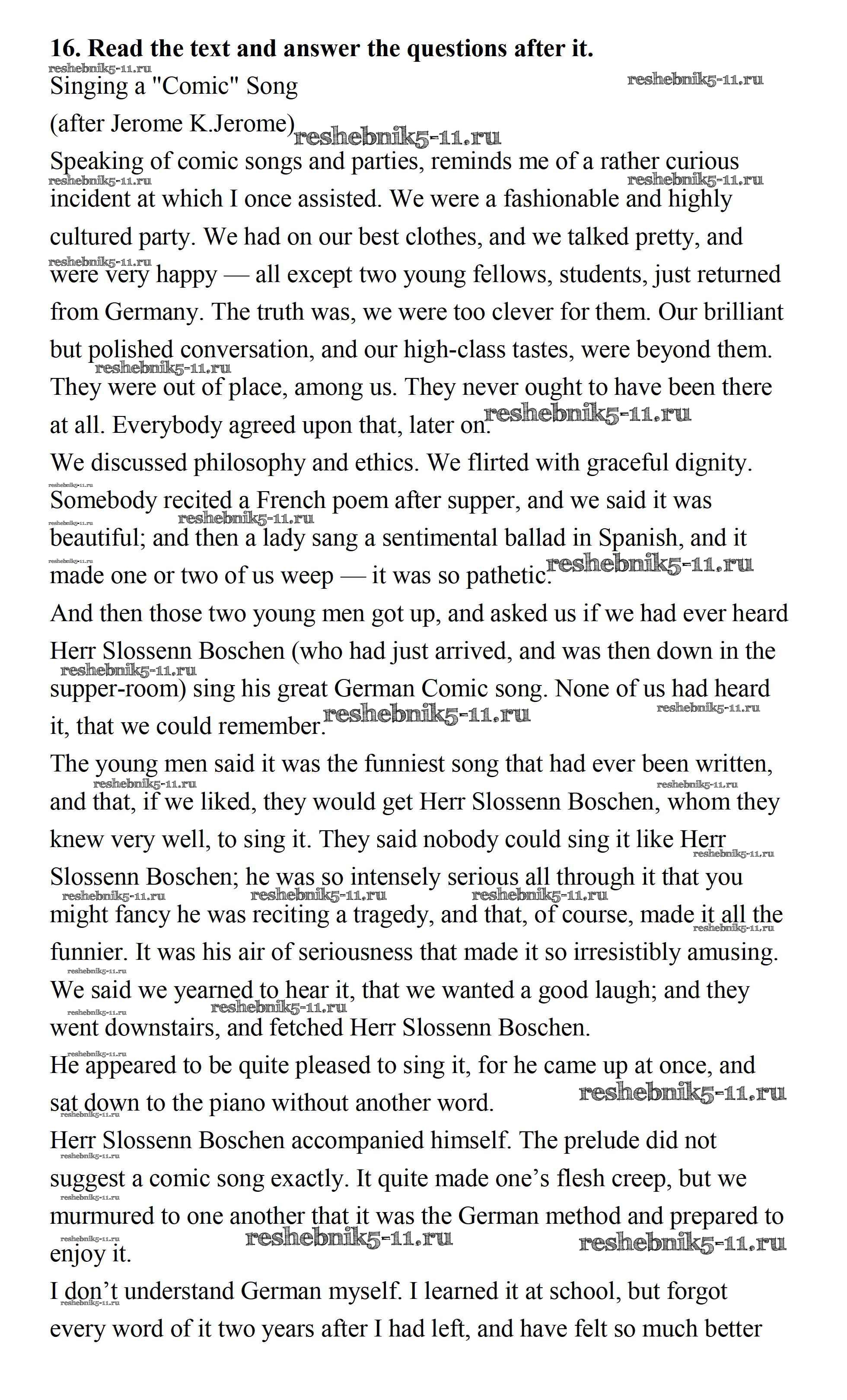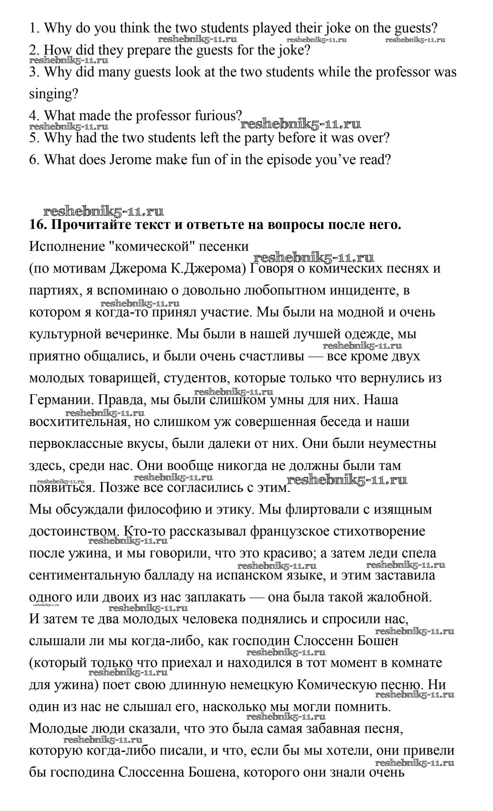 Готовая домашняя работа с ответами по Английскому языку за 11 класс Афанасьева, Михеева Учебник Углубленный уровень Просвещение 2015 ФГОС - Unit 1. Sounds of Music 16