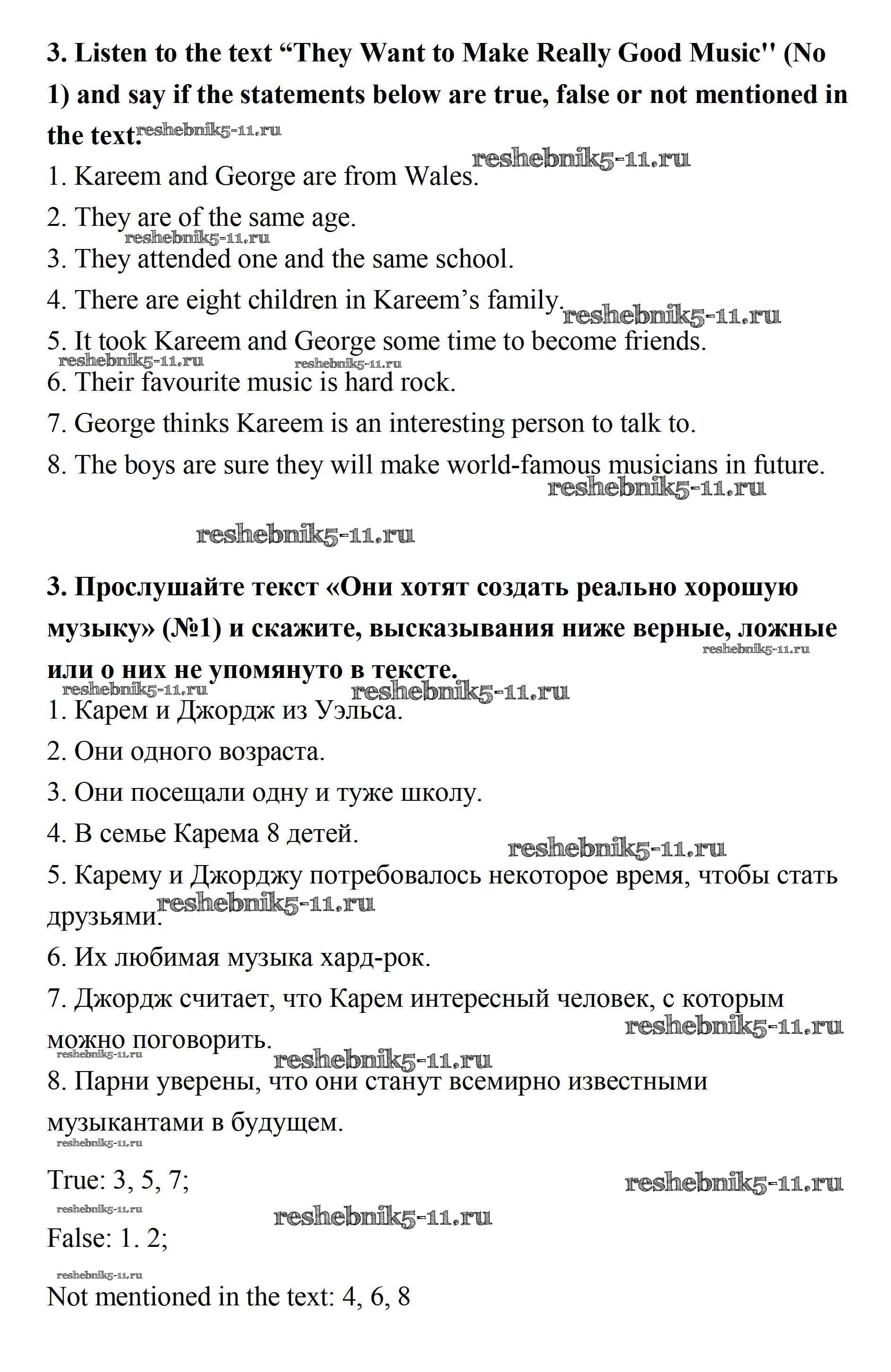 Готовая домашняя работа с ответами по Английскому языку за 11 класс Афанасьева, Михеева Учебник Углубленный уровень Просвещение 2015 ФГОС - Unit 1. Sounds of Music 3